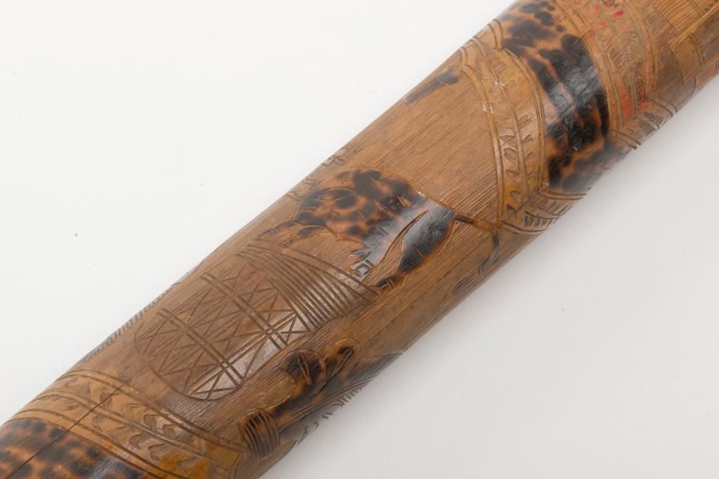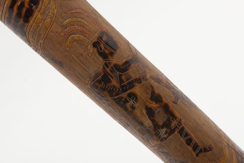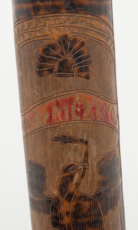 Aztec-style carved club for parade circa 1900-1920; Mexican Revolution and Patriotic motifs. Est.: $300-$600.
