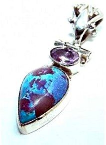 Silver and Azurite & Amethyst Pendant. Allow 6 to 8 weeks for delivery.