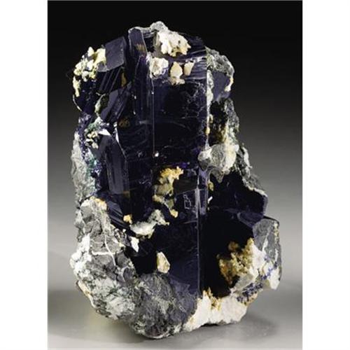 <B>AZURITE CRYSTAL</B></I><BR> <I>Tsumeb, Otjikoto Region, Namibia</B></I><BR>This large, indigo-blue specimen of azurite is a perfect example of why this mine is world famous among collectors of fine minerals. The size, luster and perfection inherent in this crystal would be inconceivable anywhere else on this planet. The main crystal is roughly 4 inches in height and 2 inches across. There are several smaller collateral crystals off to the side as well. Grey limestone provides the matrix rock seen on the base and back. The overall dimensions are: 5 inches high by 3 ¾ inches wide and 3 inches thick. From the collection of Charles Key; noted connoisseur of Namibian minerals. <BR><BR><b>Shipping:</b> Requires 3rd Party Shipping (<a target="_blank" href="http://www.heritageauctions.com/common/shipping.php">view shipping information</a>)
