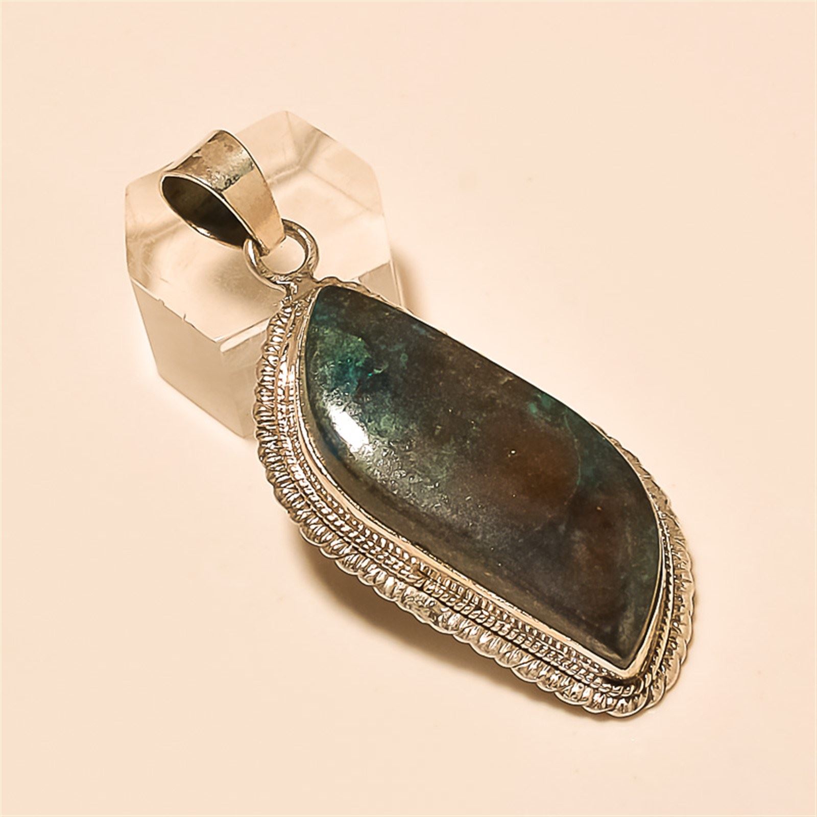 Azurite Pendant Solid Sterling Silver Length:2.25 inch Weight:14 gram #P-111