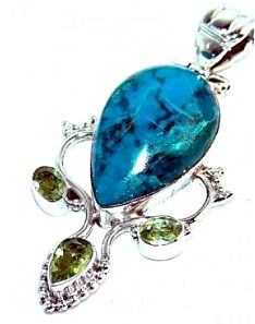 Silver and Azurite & Peridot Pendant. Allow 6 to 8 weeks for delivery.