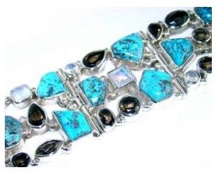 Silver & Azurite, Rainbow Moonstone and Smokey Quartz Bracelet. Allow 6 to 8 weeks for delivery.