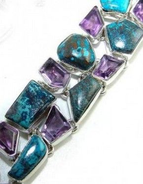 Silver & Azurite and Amethyst Bracelet. Allow 6 to 8 weeks for delivery.