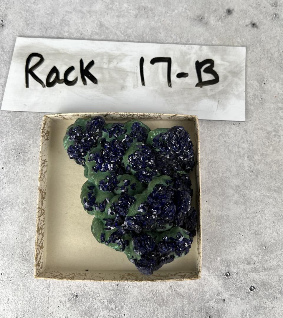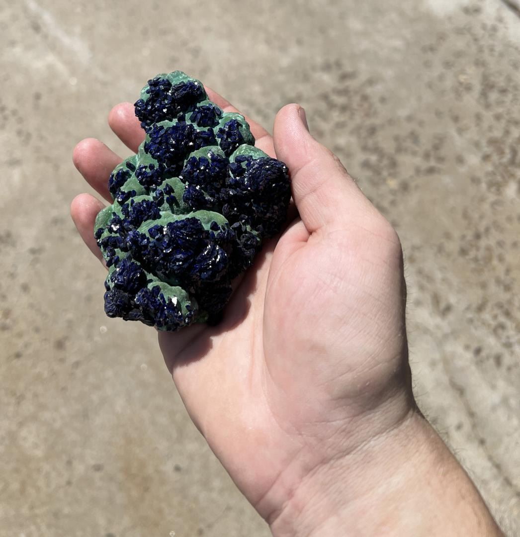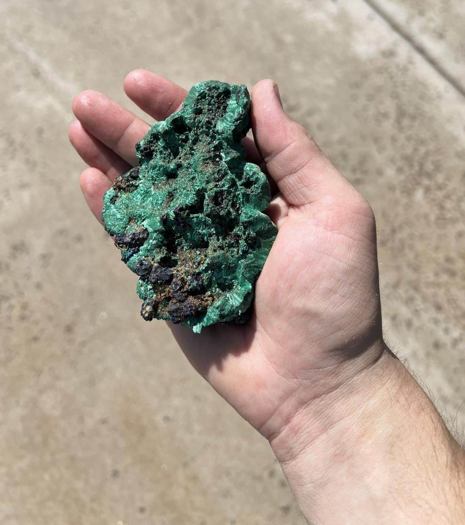 Superb specimen. Fuzzy Botryoidal Malachite. As good as it gets. 3 1/2" by 3 1/8" by 1 1/4". 210 grams Provenance: From the Estate of Kitty's Copper Shop Butte Montana.