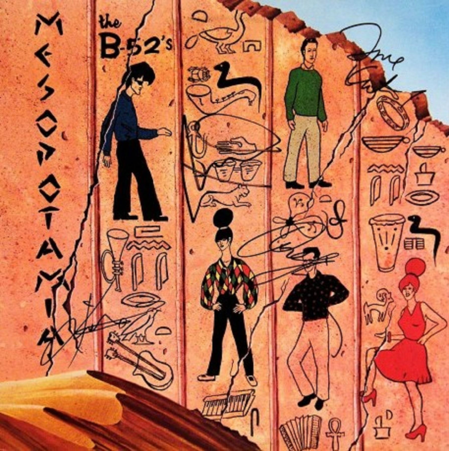 B-52's 1982 Mesopotamia album autographed by Ricky Wilson, Cindy Wilson, Keith Strickland, and Fred Schneider. 12x12 inches vinyl included