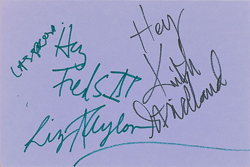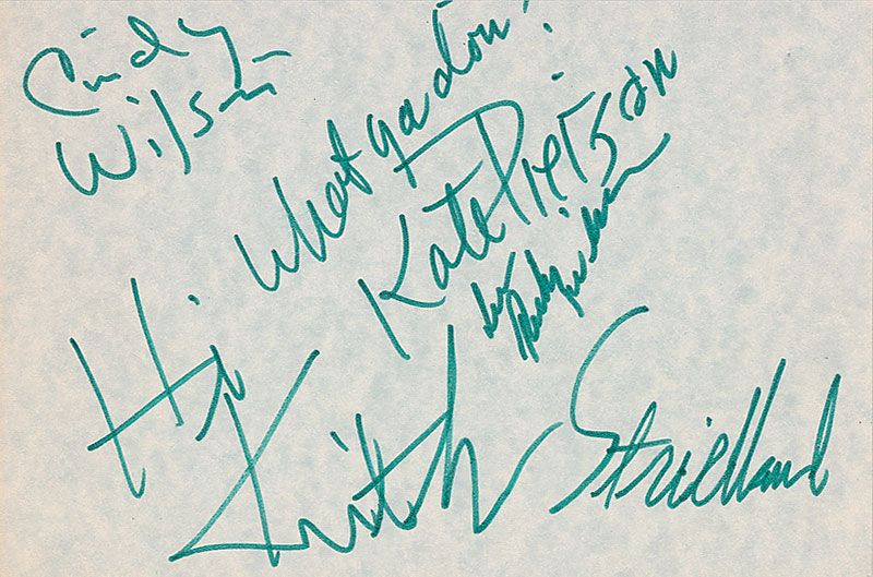 Six signatures: felt tip signatures of Fred Schneider and Keith Strickland on a purple 6 x 4 card, and felt tip signatures of Keith Strickland, Ricky Wilson, Cindy Wilson, and Kate Pierson on an off-white 6 x 4 card. In fine condition.