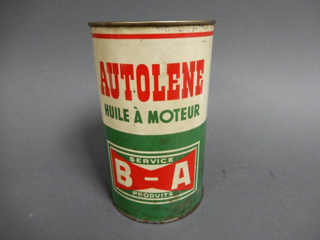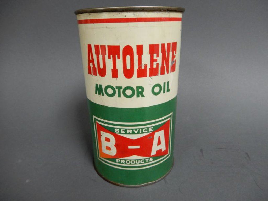 B-A BOWTIE AUTOLENE MOTOR OIL IMP QT CAN BILINGUAL - EMBOSSED TOP & BOTTOM - SOME WEAR LOCATION: LOWER BACKROOM