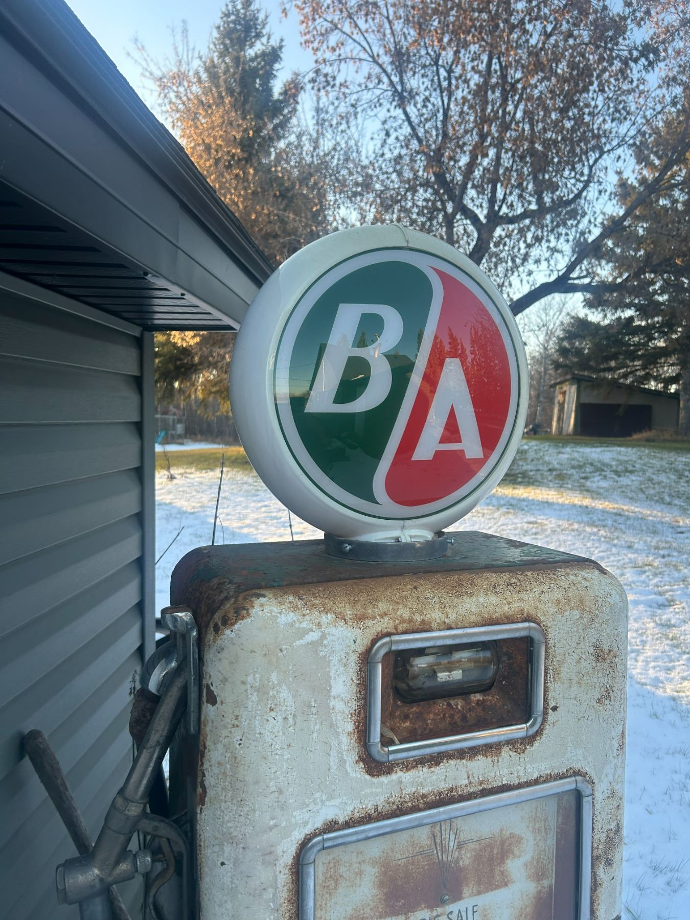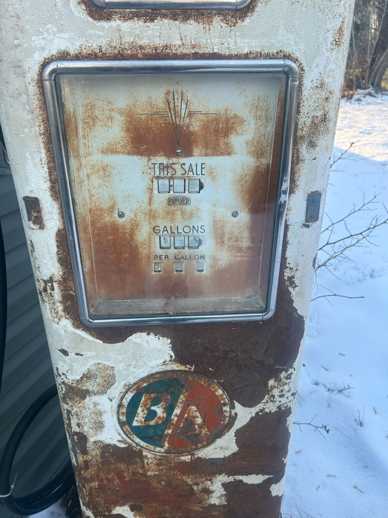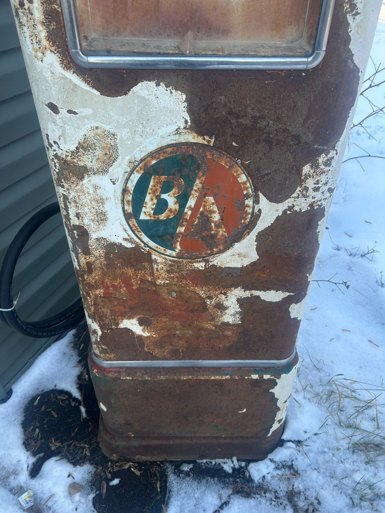 B/A Gas Pump - original pump, reproduction globe, missing back panel, Bowser, pump removed, Model 575, great piece
