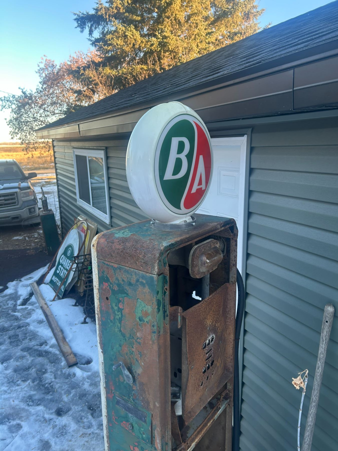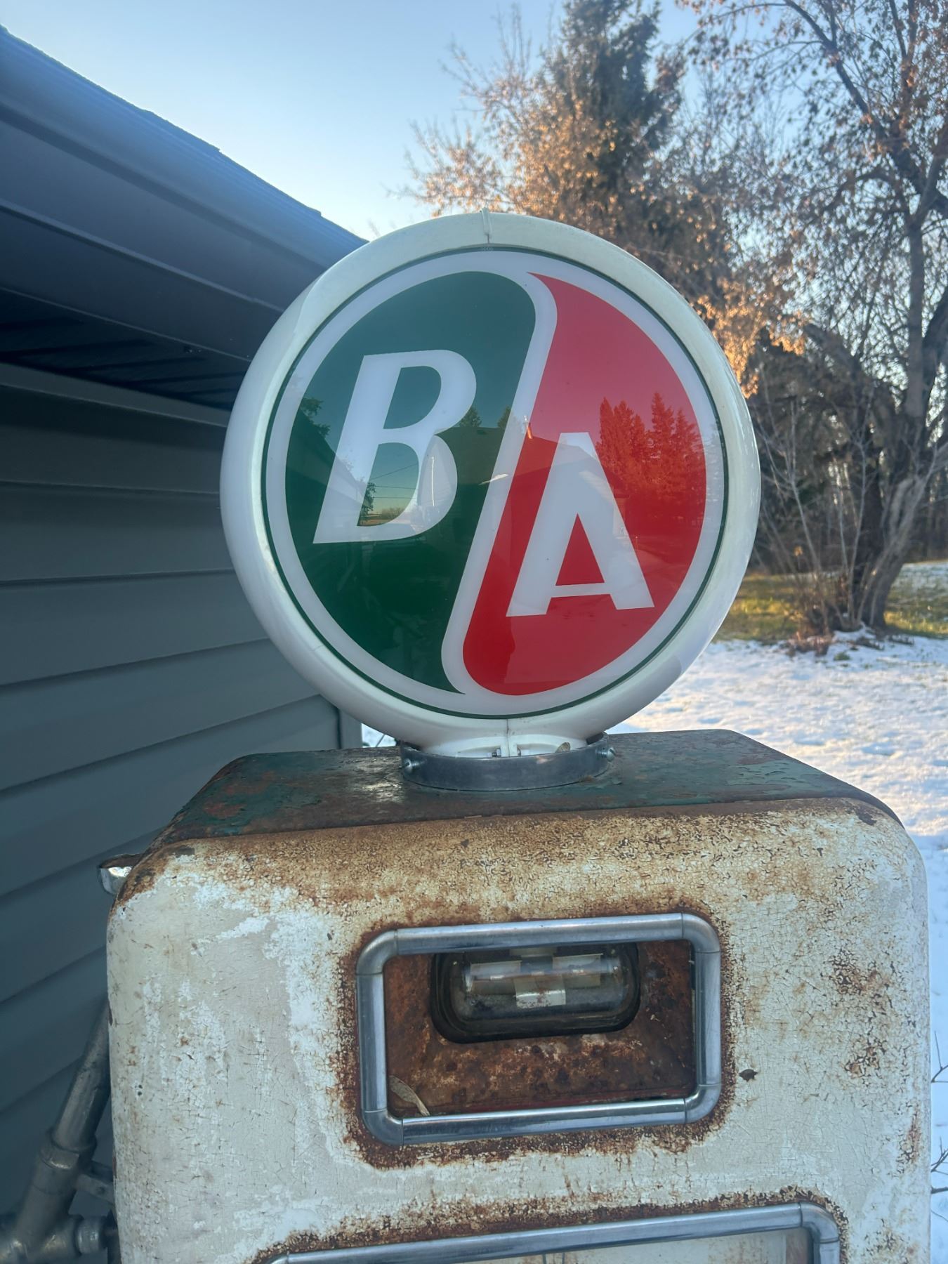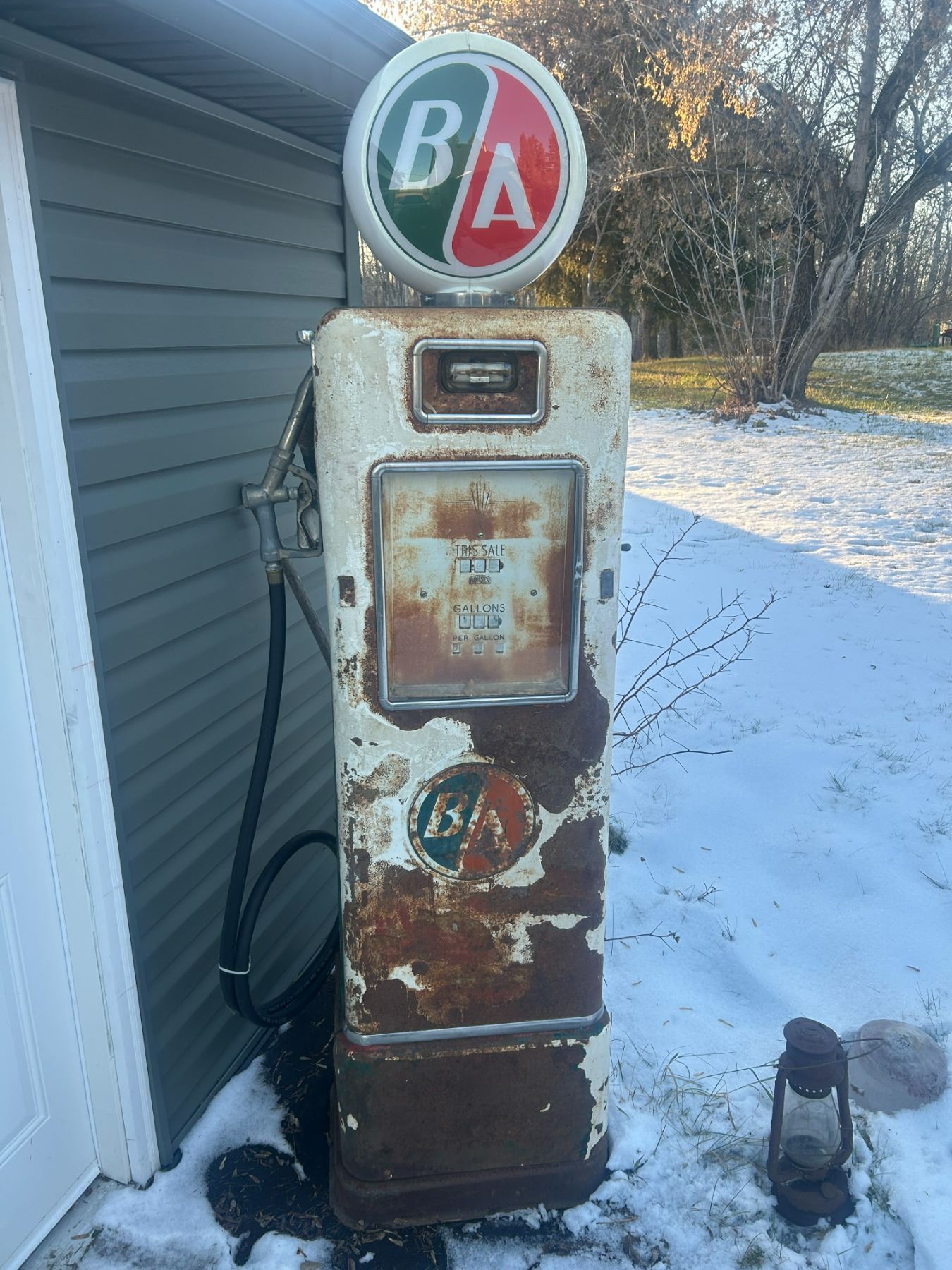 B/A Gas Pump - original pump, reproduction globe, missing back panel, Bowser, pump removed, Model 575, great piece