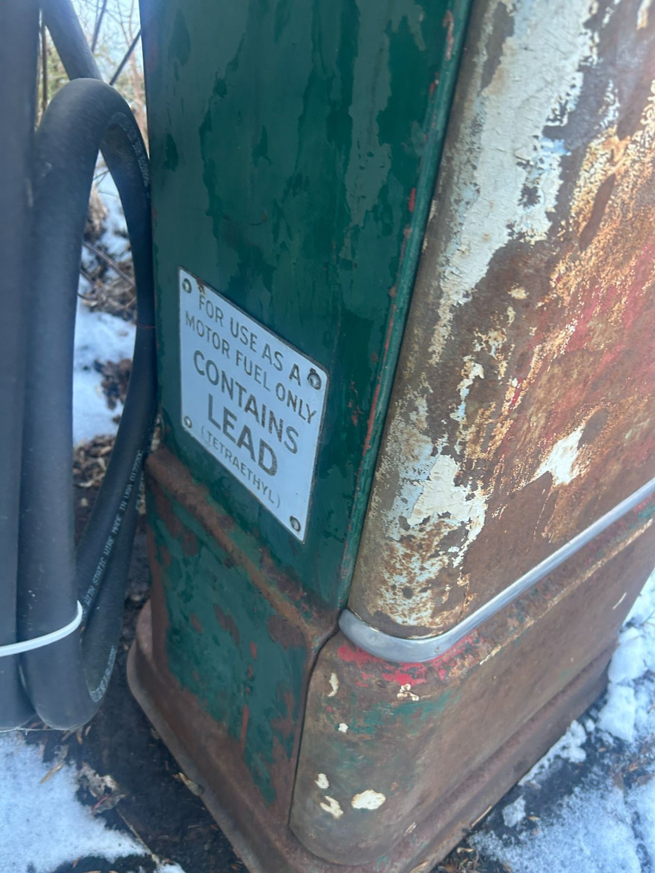 B/A Gas Pump - original pump, reproduction globe, missing back panel, Bowser, pump removed, Model 57