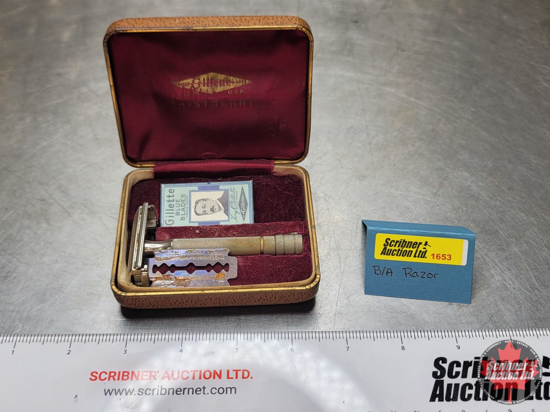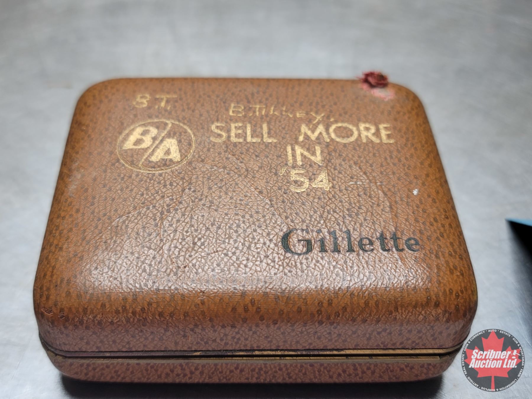 B/A Sales Promo : Gillette Razor in Case (Sell More in '54) (1-1/4"H x 4"W x 3"D) (SEE PICS!)
