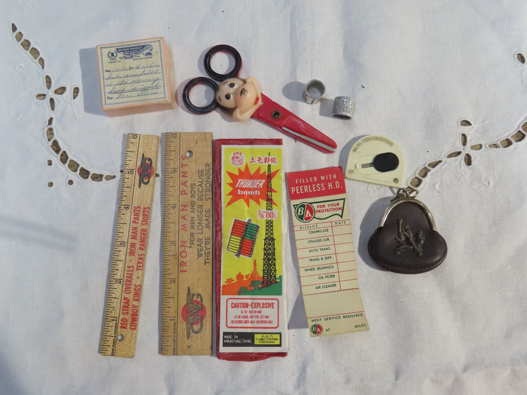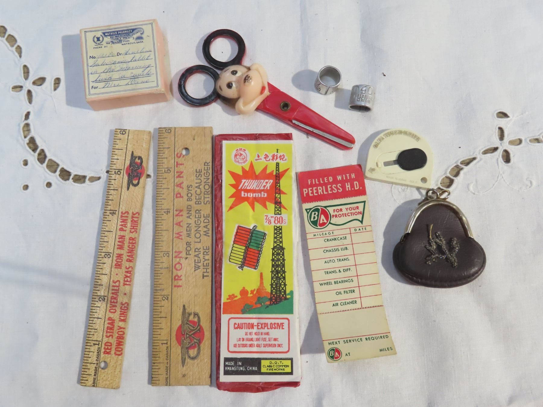 B/A sticker, old fire crackers and micky mouse