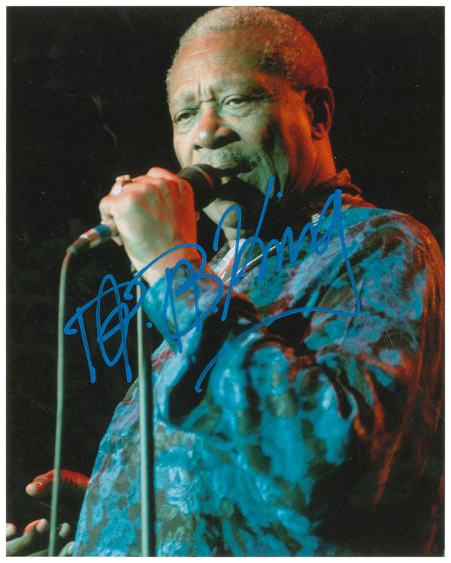 Color glossy 8 x 10 photo of King on stage, boldly signed in blue ink. In fine condition.