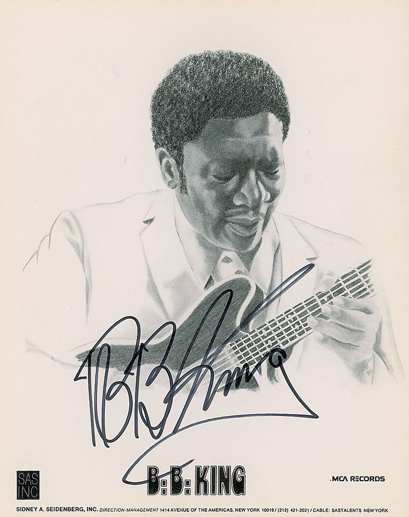 Cardstock 8 x 10 MCA records publicity photo, featuring an artist’s rendition of King, signed in black felt tip. In fine condition.