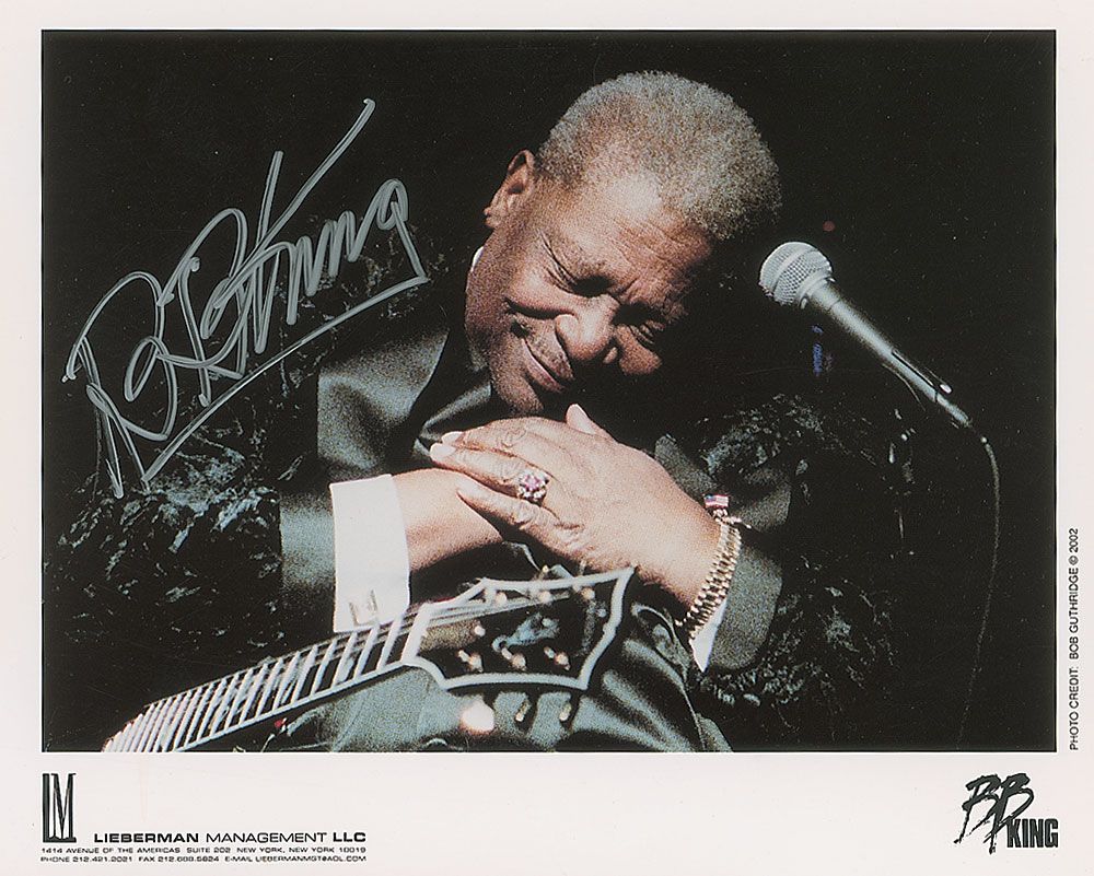 Color 10 x 8 cardstock publicity photo of King on stage, signed in silver ink. In fine condition.