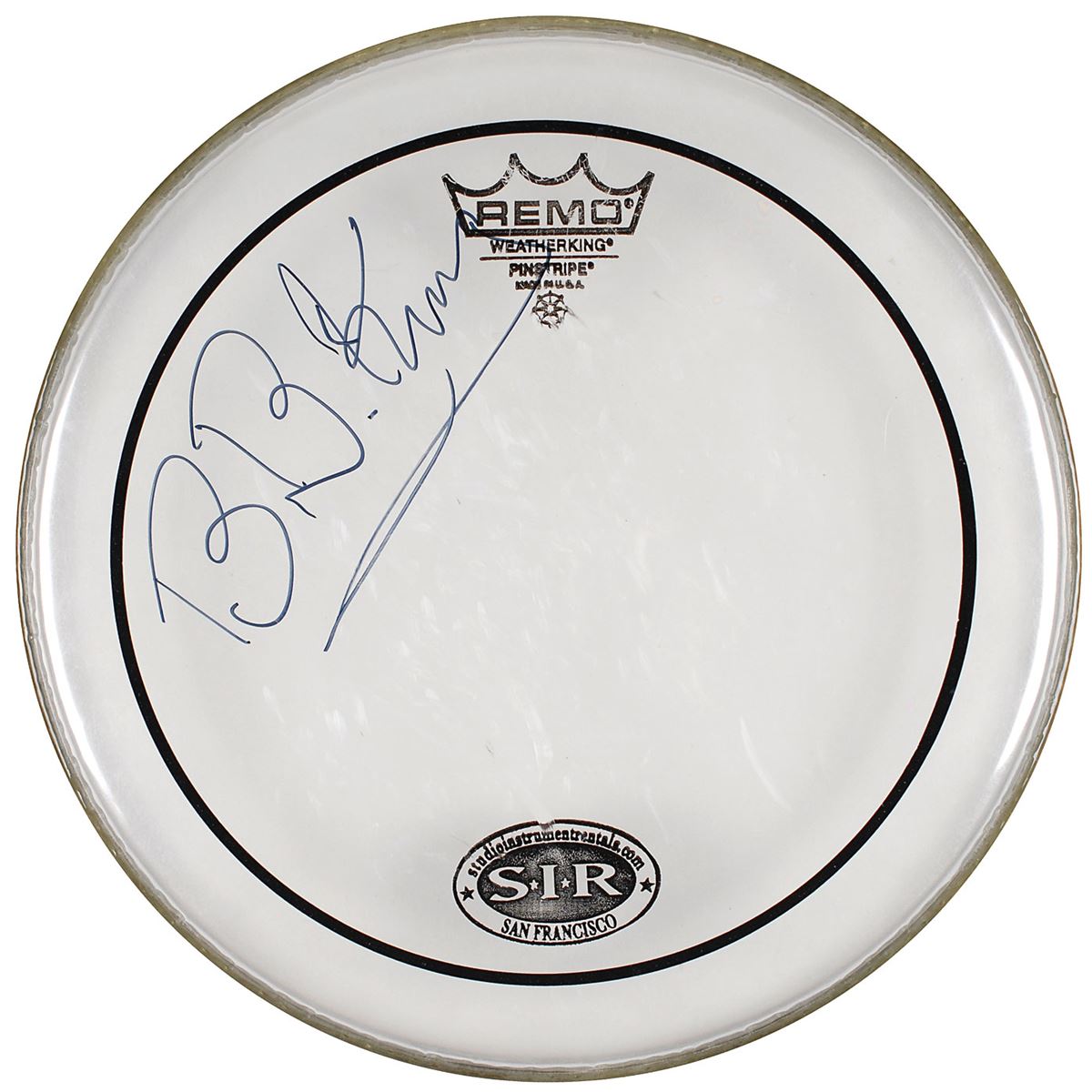 Stage-used 10.5? clear Remo drumhead, signed in black felt tip by King. In fine condition, with expected wear from use.