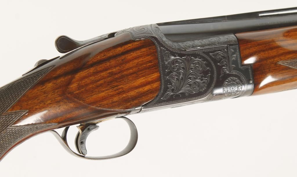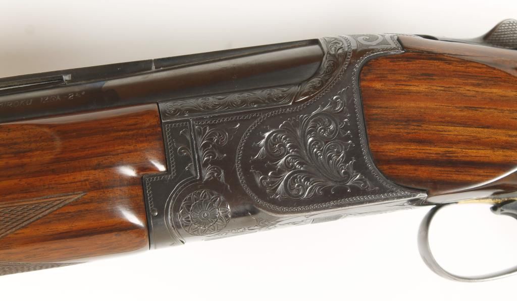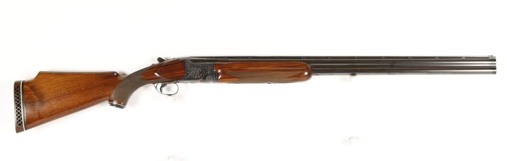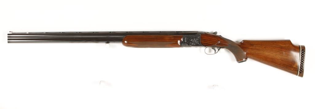 Quality Japanese made over under shotgun with 30" wide vent rib barrels. Blued finish, scroll engraved receiver, checkered Monte Carlo style walnut stock and forearm, single select trigger, and rubber recoil pad. Top barrel choked full and bottom barrel choked modified. Good bores and action. Condition: Very good showing use and well cared for. *Modern Firearm*