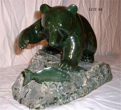 ARTIST: ABRAHAM SU, # EJ8005, BEAR - 8 ½" L, 5" H, 5" W, FISH - 3" L, BASE - 11" L, 8" W, 3" H, WEIGHING 24 LBS.