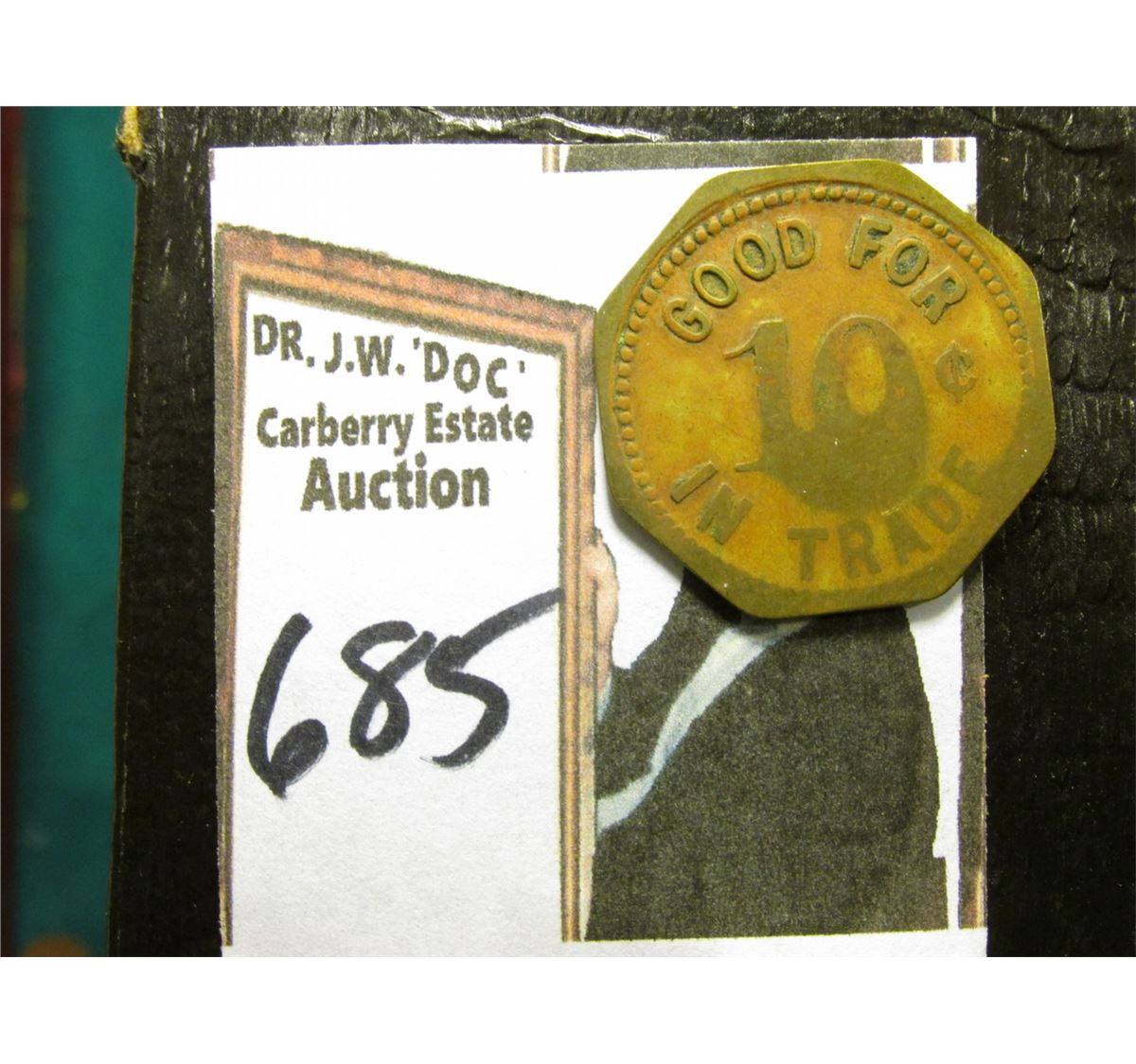 "B & C Pool Hall/Marlow, Okla.", rev. "Good For/10c/In Trade", oct., br., 20mm. 'Doc' valued at $18.