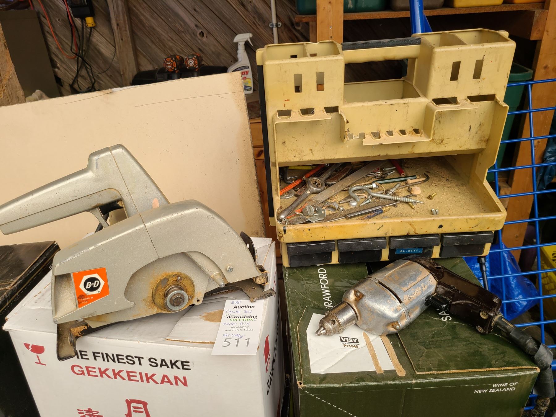 M-36312. Circular saw missing blades. Drill make unknown, see cord has been taped. Pickup at 10am