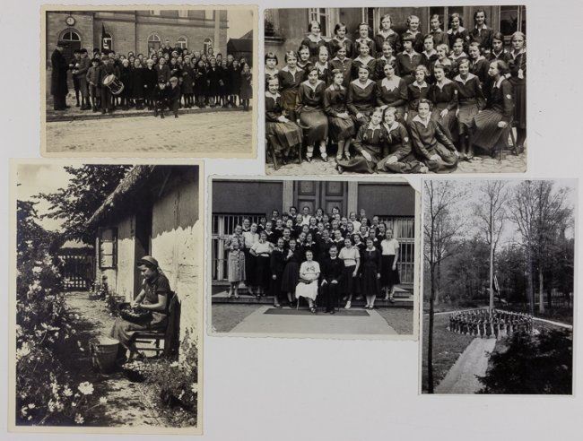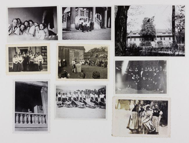 Small group of 18 photos of B.D.M. members, also showing young women undertaking R.A.D. service, saluting flag, with wheelbarrows, group photos, with H.J. members, etc.