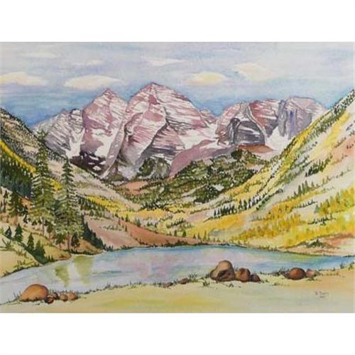 B. Davey Maroon Bells Aspen, Colorado Watercolor Signed lower right 1952 16" x 20"