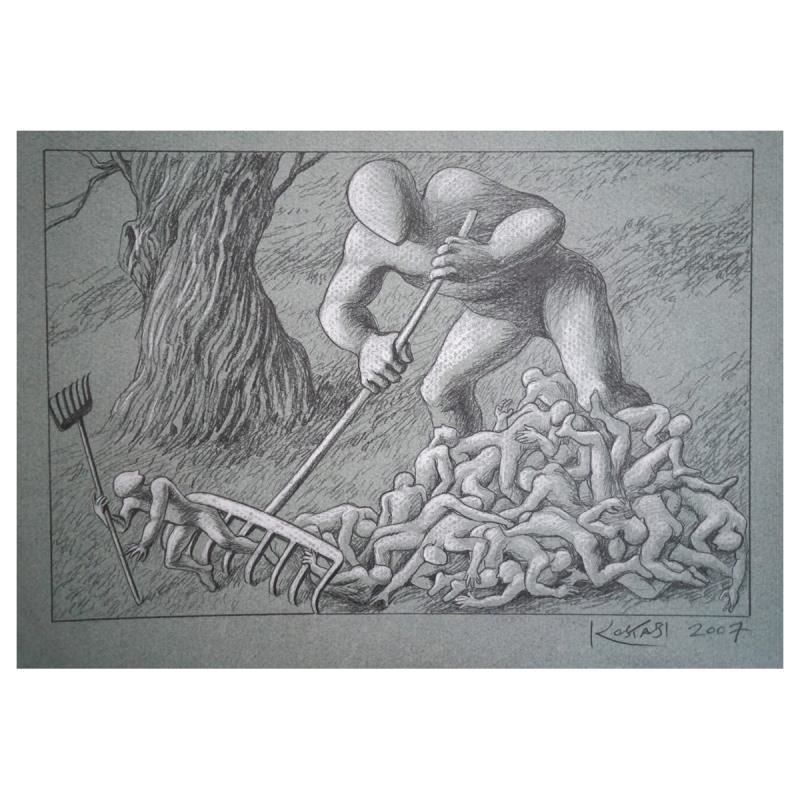 "B.F.G" is an original artwork, pencil on paper, by Mark Kostabi. The piece is hand signed and comes with a certificate of authenticity. Measures approximately 8" x 11.5".