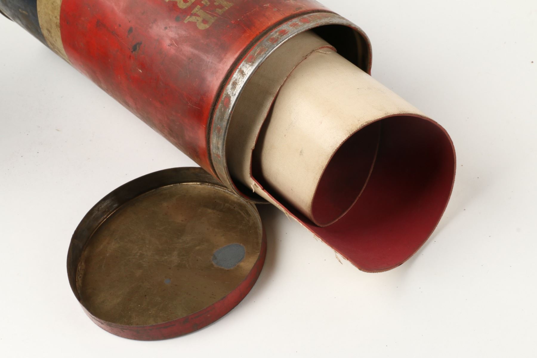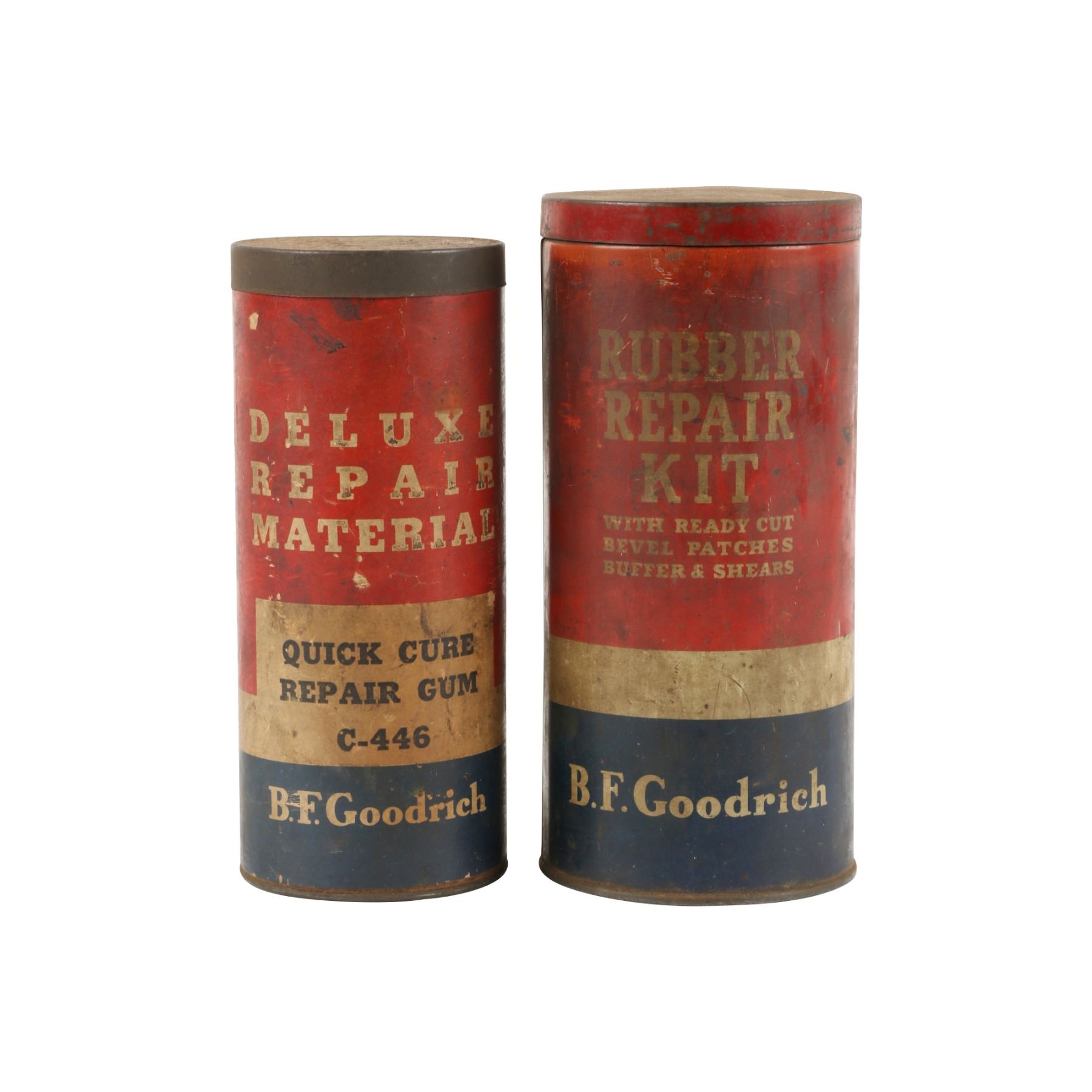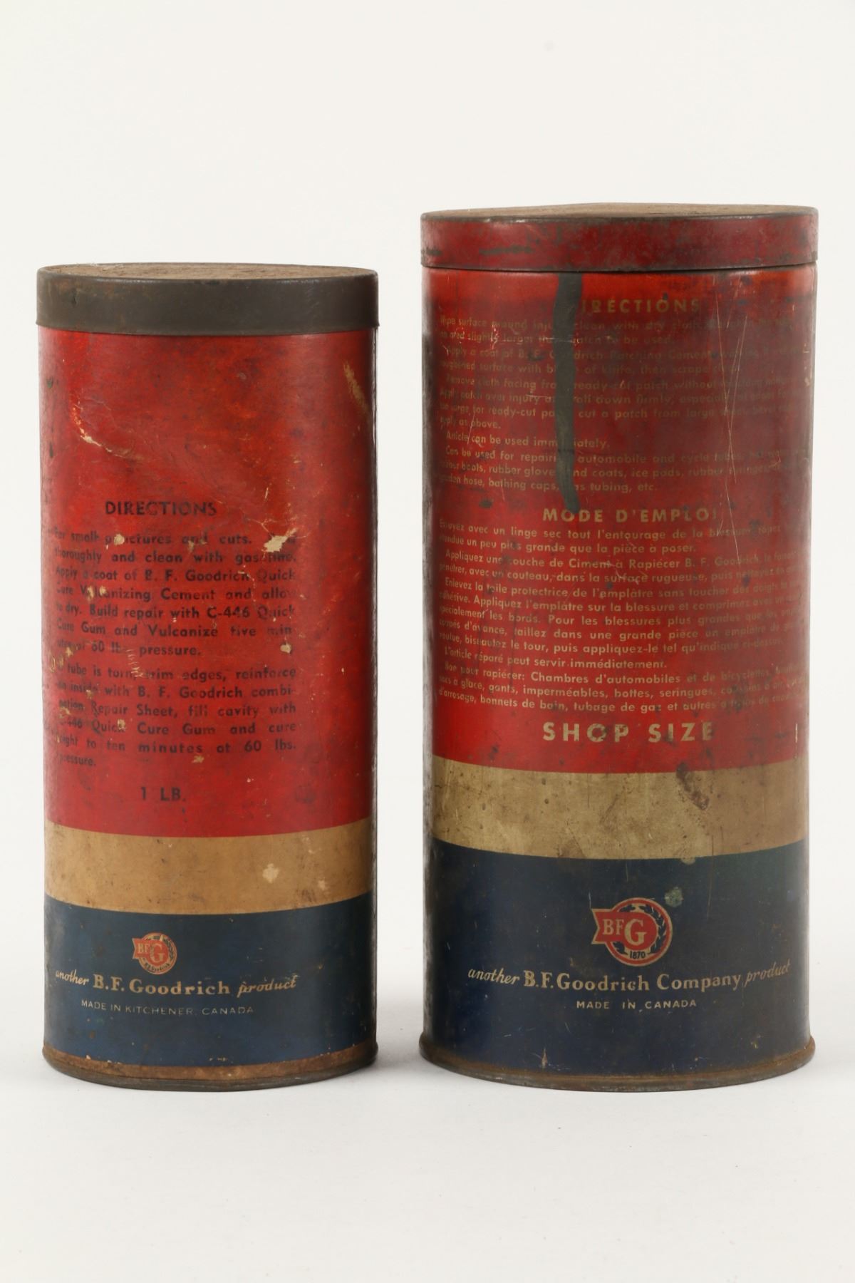 Two (2) kits with remaining contents. Canadian. Circa 1940. One (1) lithographed tin and one (1) cardboard. 7"h; 8"h. Surface heavily soiled. $50-100.