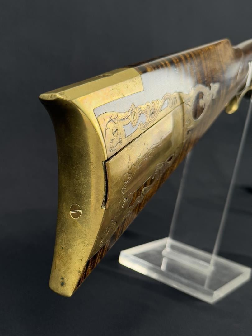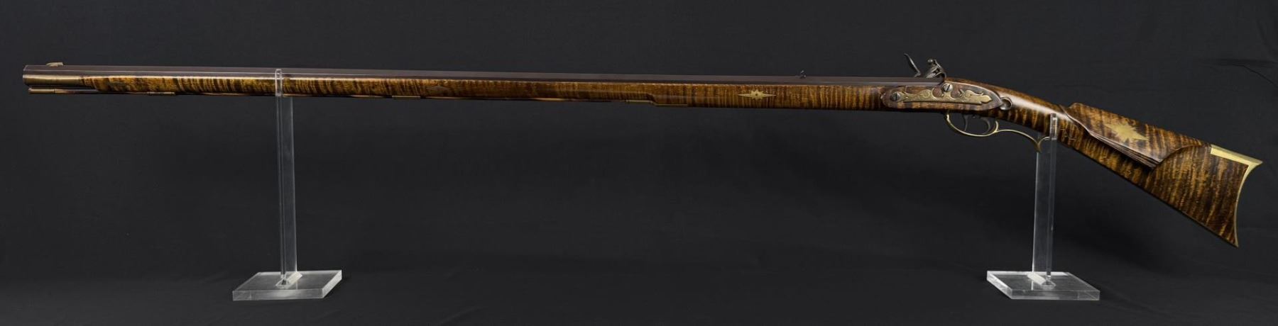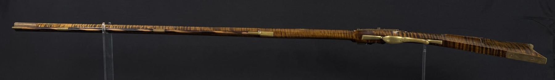 43 1/2" barrel. Black powder guns cannot be shipped to addresses in Hawaii, Illinois, Michigan, New Jersey & Rhode Island. No sales to these states, any bids from these states will result in immediate termination of your bidding account.