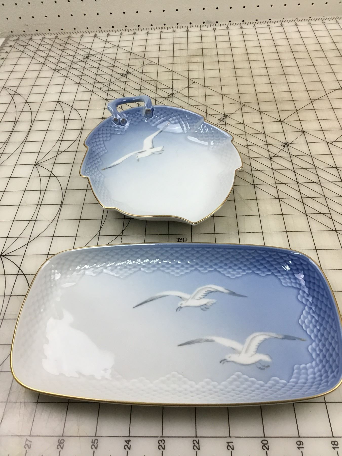 B&G BING & GRONDAHL DENMARK SEAGULL PORCELAIN TRAY PLATTER AND LEAF DISH