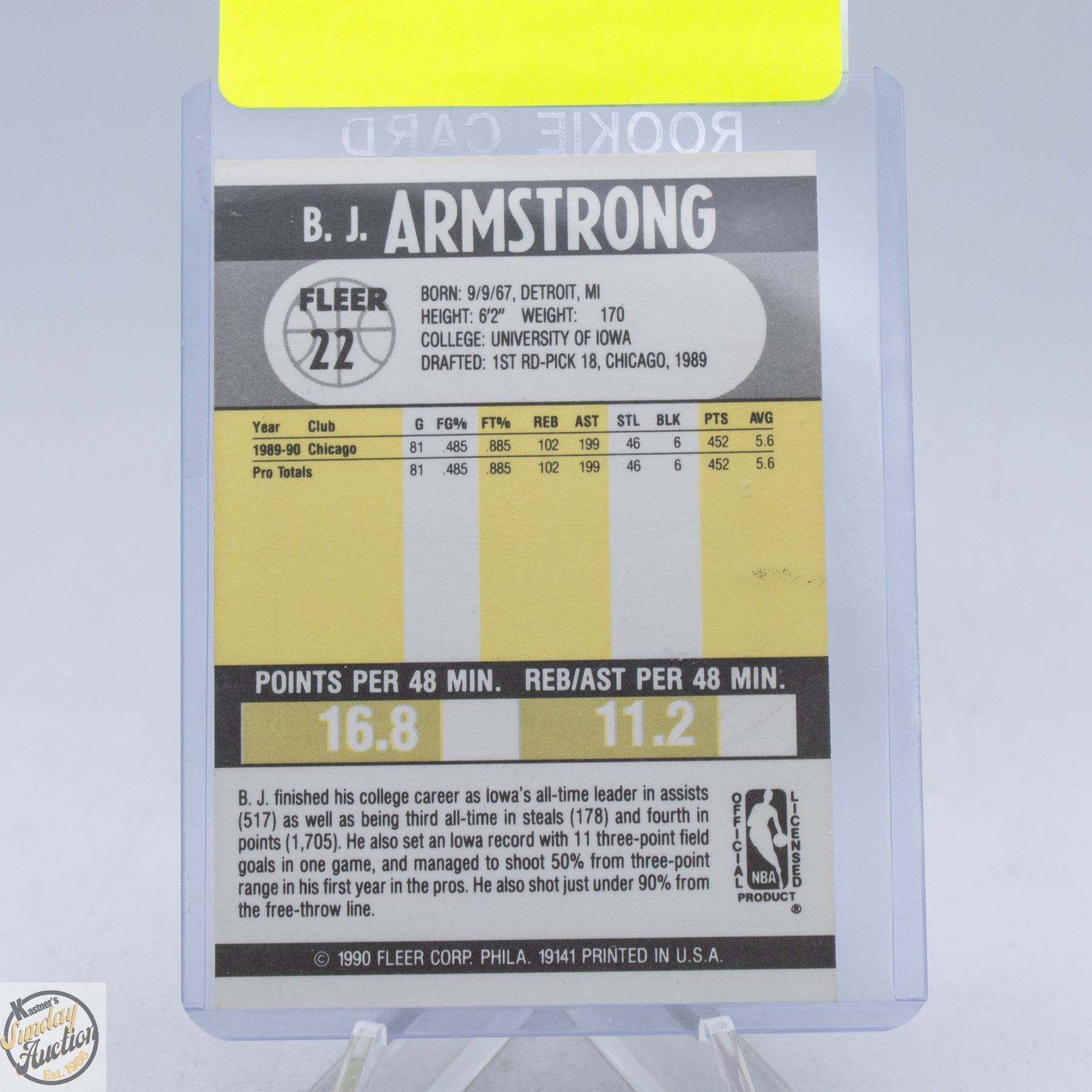 B.J. ARMSTRONG ROOKIE CHICAGO BULLS GUARD FLEER