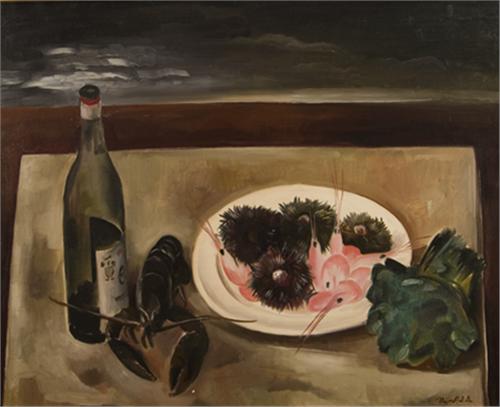 B.J.O. Nordfeldt 1878-1955). Still Life with Lobster. 25" x 32" oil on canvas. Signed lower right. Painted in Paris in 1932. (est $10,000-20,000)