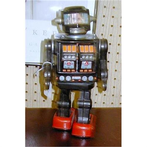 Made in Japan B.O. Harikawa tin Robot Astronaut - chest opens, a little off balance. Have not tried to get it working. There is rust in the back and scratches due to age. Buyer pays shipping and handling costs.