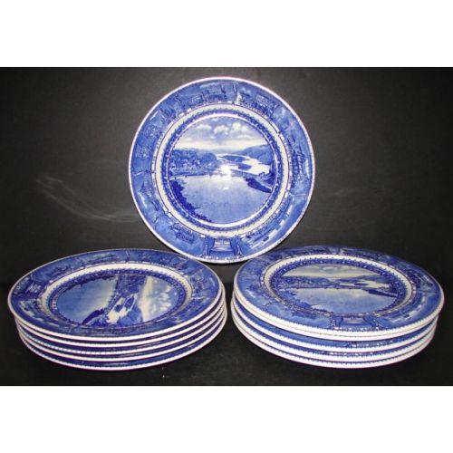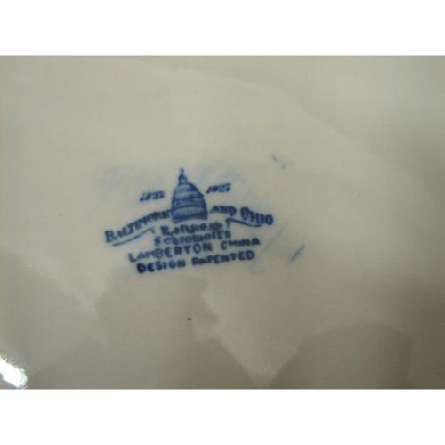 11 BALTIMORE & OHIO RAILROAD CENTENARY CHINA PLATES. Center of plates depicts a view of Harper’s Ferry, West Virginia. Border of plates are decorated with various trains. All plates are marked on bottom with Scammell’s Lamberton Design Patented mark. 10.5” Dia. From the Estate of Governor Elbert N. Carvel (Governor of Delaware 1949-1953, 1961-1965) & Mrs. Ann Valliant Carvel.