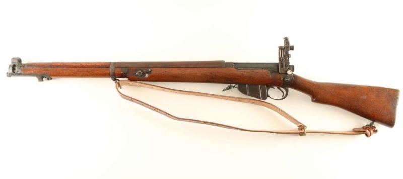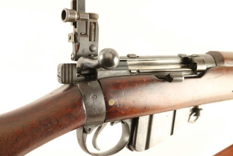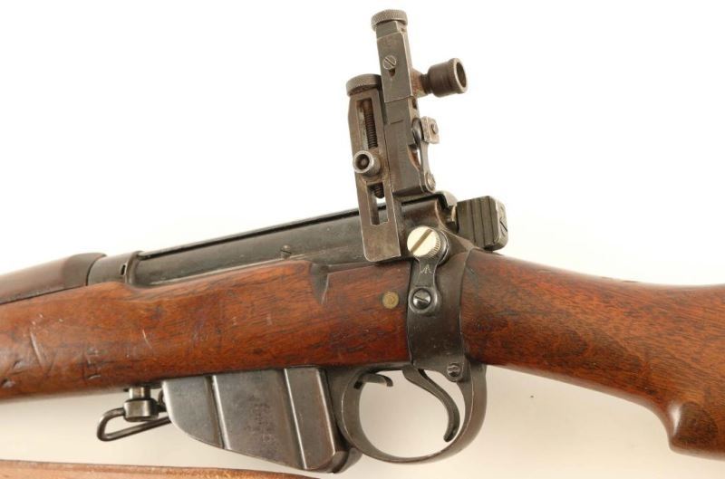 SN: B26600 British military magazine fed bolt action service rifle converted into SMLE configuration utilizing a 1902 production Lee Enfield Mark I* chambered in .303 British. Features a blued finish, 25.2" barrel, ramped patridge front sight, Mues Special adjustable receiver sight, serrated trigger, 10Rd detachable magazine with cut-off on the right side of the receiver, dust cover on the bolt, brown leather sling, SMLE style hand guard, nose cap, forend & barrel band, and straight grip shoulder stock with long tang brass trapdoor buttplate. The right side of the butt socket is marked '[crown]/E.R./B.S.A. Co./1902 and L.E/I*'. Receiver is stamped 'VIC'. Stock is marked with a Birmingham circular cartouche/1*', '4813' and a large circular cartouche that reads 'Commonwealth Mily Forces'. Serial numbers on the bolt handle and receiver match. Exposed metal surfaces retain approximately 40% of their blued finish with the nosecap showing scattered pitting and the balance of the metal surfaces turned to a brown patina. Action is smooth, bore is excellent and the wood stocks are very good. Condition is NRA Very Good ***C&R Firearm*** From The John F Sukey Collection