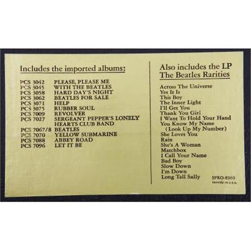 <B><I>The Beatles Collection</B></I></B></I> <B>Limited Edition Box Set - Still Sealed Number 0001 (EMI - UK, 1978).</B></I> This great box set made expressly for the US contains the UK versions of the albums <I>Please Please Me,</B></I> <I>With the Beatles,</B></I> <I>Hard Day's Night,</B></I> <I>Beatles For Sale,</B></I> <I>Help!,</B></I> <I>Rubber Soul,</B></I> <I>Revolver,</B></I> <I>Sergeant Pepper's Lonely Hearts Club Band,</B></I> <I>Beatles</B></I> (aka <I>The White Album</B></I>), <I>Yellow Submarine,</B></I> <I>Abbey Road,</B></I> <I>Let It Be,</B></I> and <I>Rarities.</B></I> That's 14 discs in all (<I>The White Album</B></I> is a two-record set). A collectors' fave since its issue, our offering is a special limited and numbered edition, of which just 3,300 were pressed. The copy offered here is the still sealed #1! You read it right, Fab Four-o-phile! Number 1 (technically #0001) of 3,300! The "Limited Edition" sticker is still on the front shrinkwrap, and the promo song selection sticker is still on the back shrinkwrap. All bidders in an orderly queue, if you please!<BR><BR><b>Shipping:</b> Recordings (<a target="_blank" href="http://www.heritageauctions.com/common/shipping.php">view shipping information</a>)