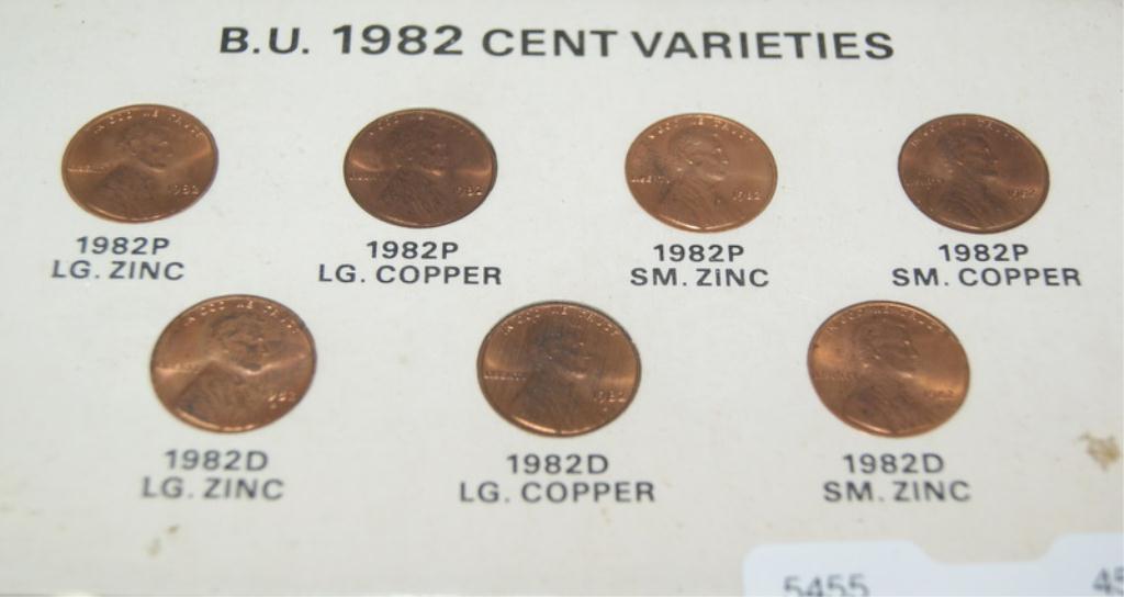 1982-P LG Zink, 1982-P LG Copper, 1982-P SM Zink, 1982-P SM Copper, 1982-D LG Zinc, 1982-D LG Copper, 1982-D SM Zink