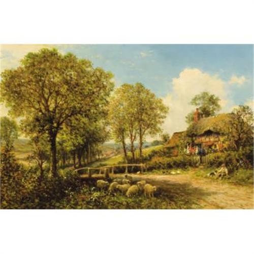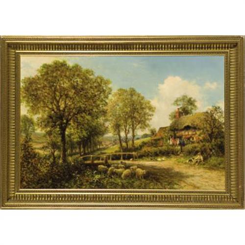 <B>BENJAMIN WILLIAMS LEADER (British, 1831-1923)</B></I><BR><I>Spring Cottage with Shepherd and Flock</B></I>, 1896<BR>Oil on canvas<BR>16-1/4 x 24-1/8 inches (41.3 x 61.3 cm)<BR>Signed and dated lower left:<I> B. W. Leader 1896</B></I><BR> <B>Condition Report:</B> Minor frame abrasion, and re-varnished<BR><BR><b>Shipping:</b> Requires 3rd Party Shipping (<a target="_blank" href="http://www.heritageauctions.com/common/shipping.php">view shipping information</a>)