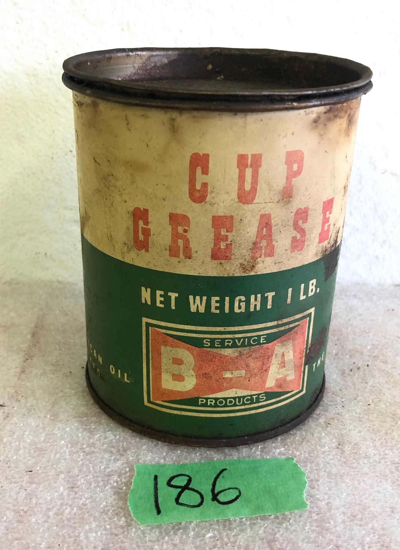 BA "BOW TIE" 1 LB CUP GREASE TIN - SOME CONTENTS