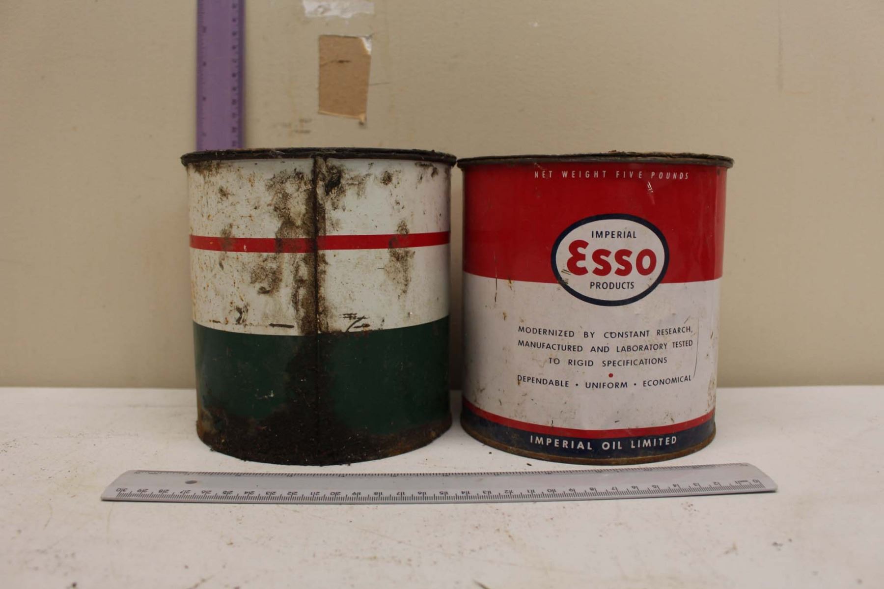 BA Oil Tin (w/Some Contents) & A Esso Grease Tin (Full)