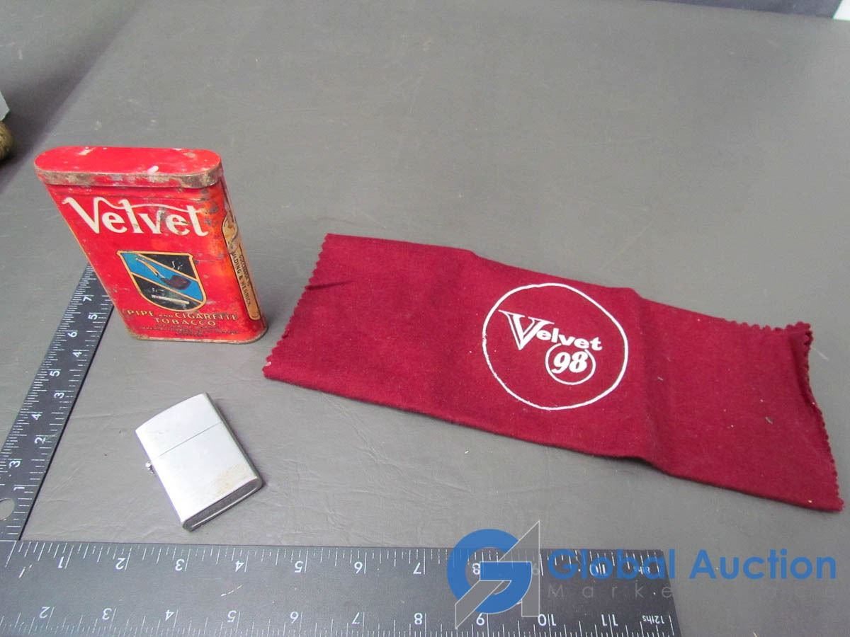 BA Velvet Cloth, Velvet Tobacco Tin & Zippo Lighter