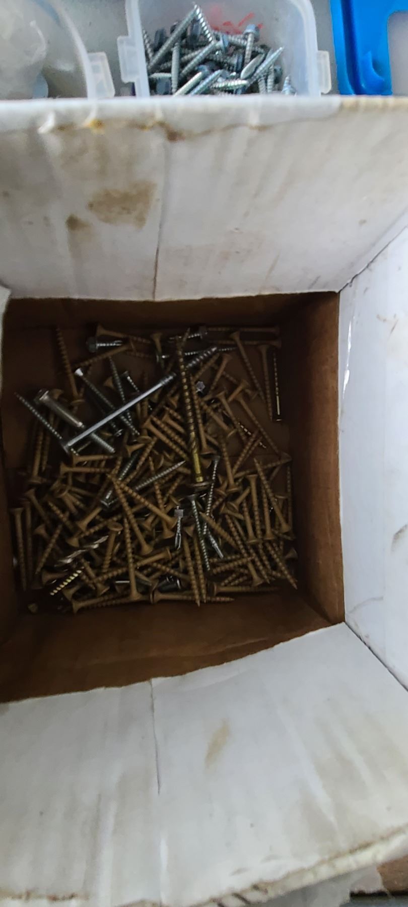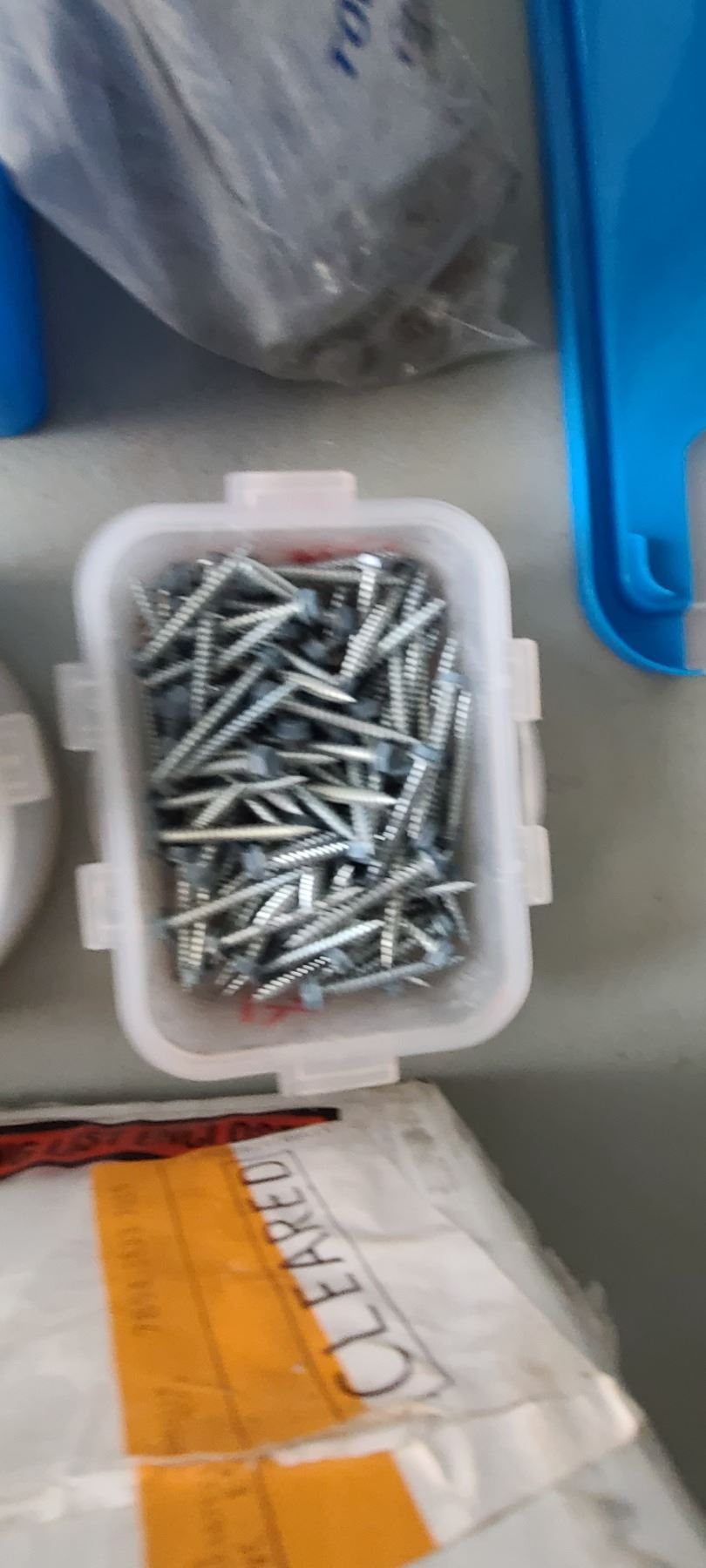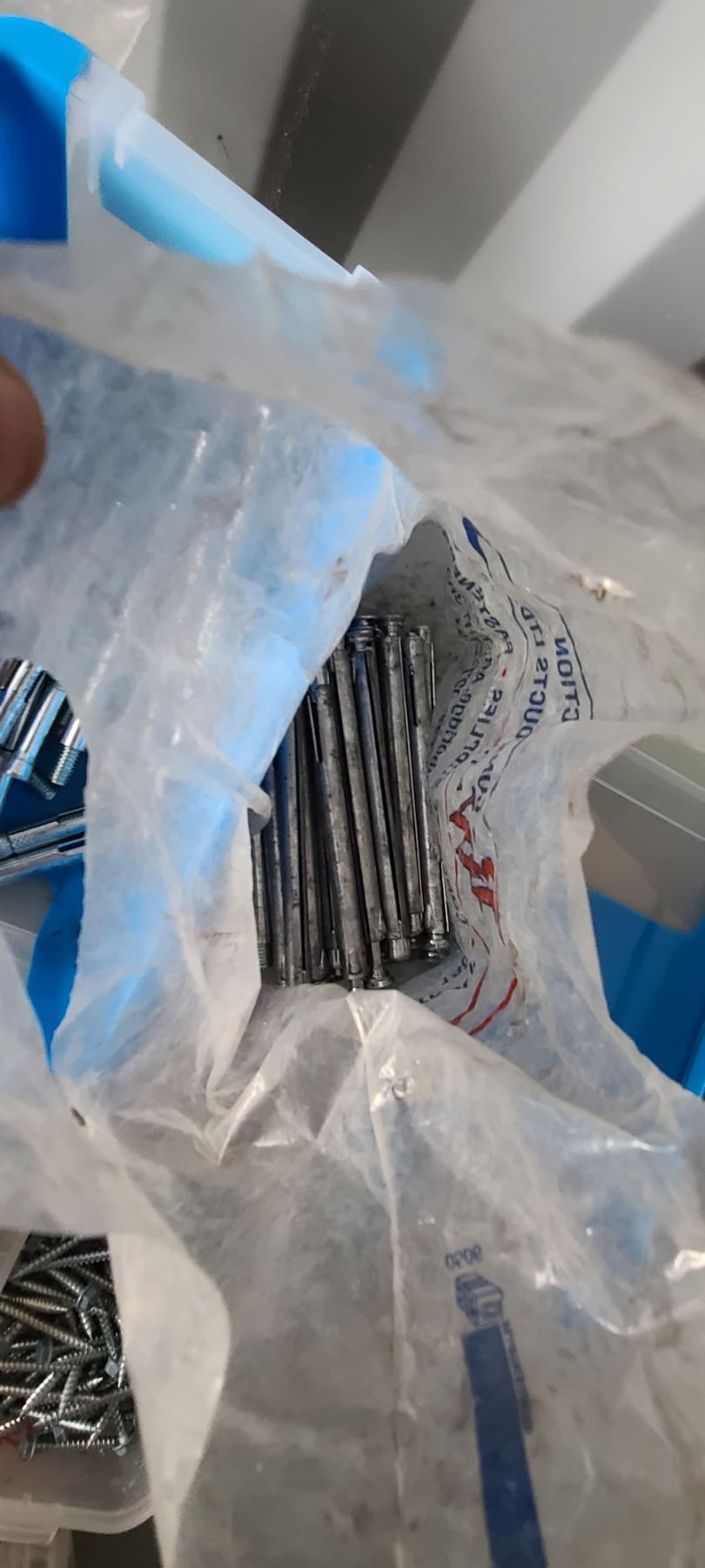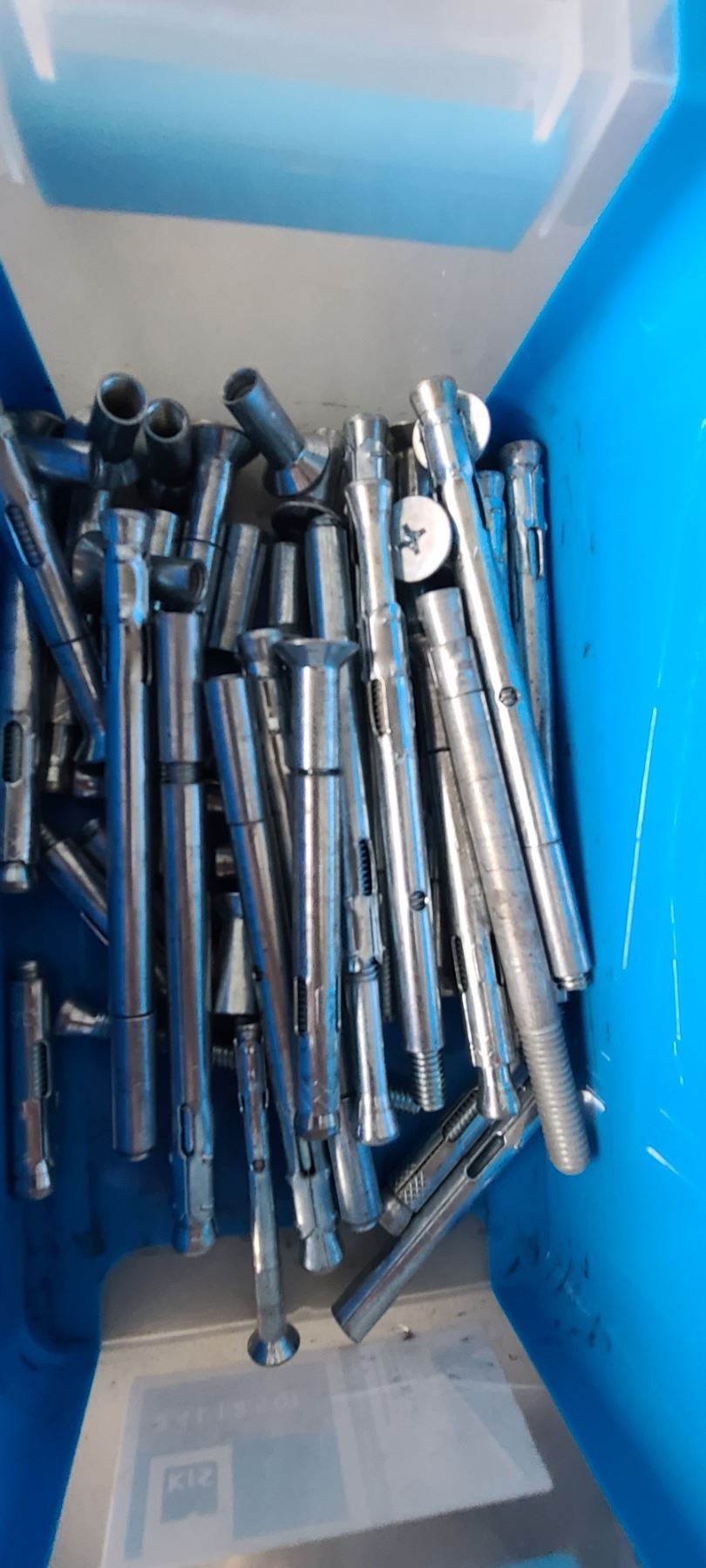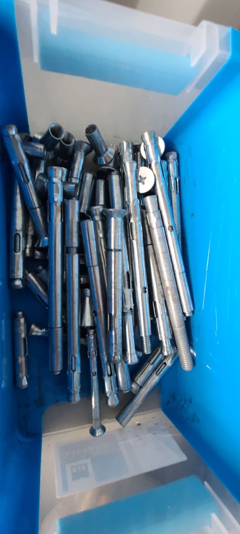 BAAG OF DRYWALL SPACER SCREWS, CONCERETE ANCHOR BOLTS, WIRE STRAPPING AND MISC.