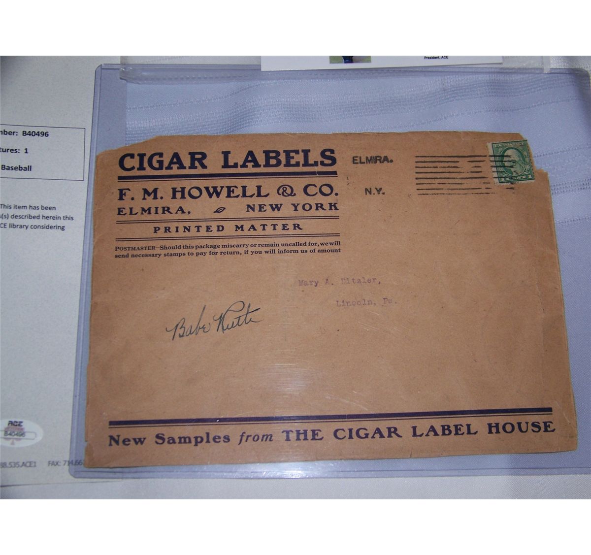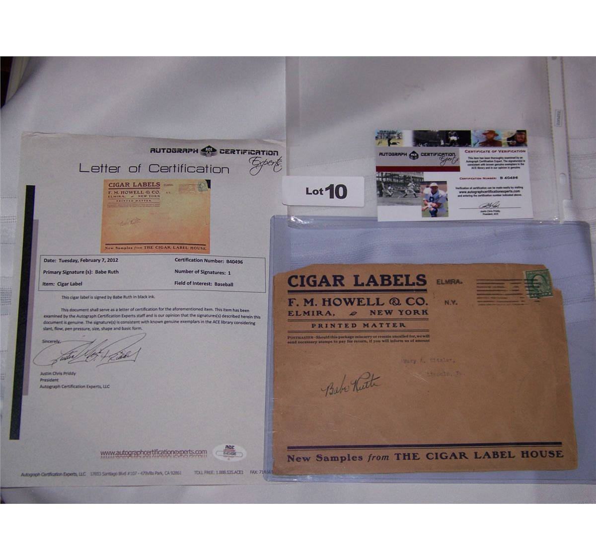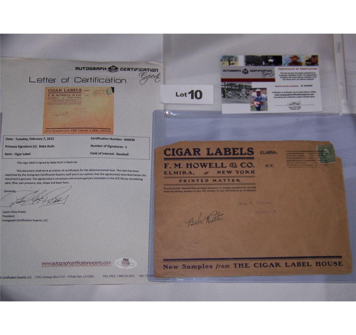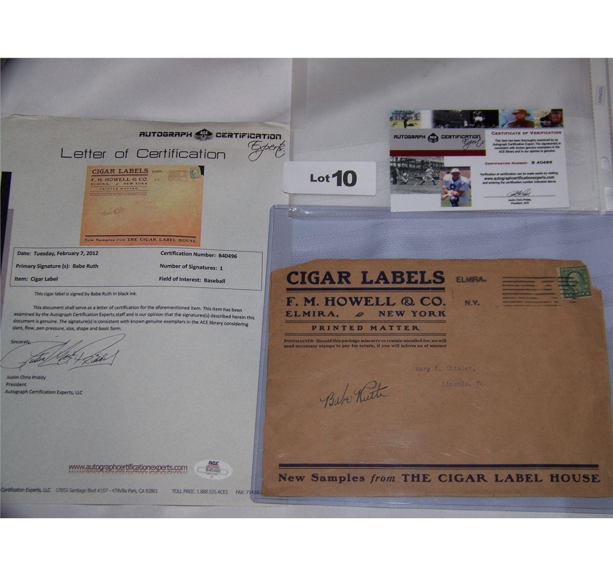 AUTOGRAPH CERTIFICATION BY AUTOGRAPH CERTIFICATION EXPERTS, ACE VINTAGE EXPERTS. CERTIFICATION NUMBER B40496