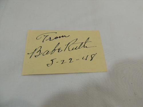 BABE RUTH CUT SIGNATURE AUTOGRAPH NO COA. AS SHOWN. VIEW PICTURE FOR DETAIL. PLEASE BE ADVISED, AND INFORMED REGARDING SIGNATURES OR AUTOGRAPHS THAT WE SELL AT AUCTION: WE ARE NOT AUTHENTICATORS, AND WE DO NOT AUTHENTICATE, OR VALIDATE ANY AUTOGRAPHS OR SIGNATURES THAT WE OFFER AT AUCTION. SOME AUTOGRAPHS OR SIGNATURES MAY COME WITH AN AUTHENTICATION FROM ANY ONE OF LITERALLY HUNDREDS OF AUTHENTICATORS ACROSS THE COUNTRY, AND AROUND THE WORLD. WE DO NOT ENDORSE ANY AUTHENTICATOR, NOR DO WE GUARANTEE THAT ANY AUTOGRAPH OR SIGNATURE IS AUTHENTIC, OR THAT IT WILL PASS AUTHENTICATION BY ANY AUTHENTICATOR. ALL AUTOGRAPHS OR SIGNATURES ARE SOLD