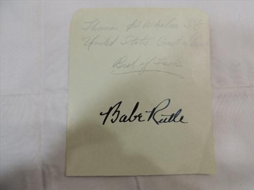 BABE RUTH CUT SIGNATURE AUTOGRAPH. NO COA. AS SHOWN. VIEW PICTURE FOR DETAIL. PLEASE BE ADVISED, AND INFORMED REGARDING SIGNATURES OR AUTOGRAPHS THAT WE SELL AT AUCTION: WE ARE NOT AUTHENTICATORS, AND WE DO NOT AUTHENTICATE, OR VALIDATE ANY AUTOGRAPHS OR SIGNATURES THAT WE OFFER AT AUCTION. SOME AUTOGRAPHS OR SIGNATURES MAY COME WITH AN AUTHENTICATION FROM ANY ONE OF LITERALLY HUNDREDS OF AUTHENTICATORS ACROSS THE COUNTRY, AND AROUND THE WORLD. WE DO NOT ENDORSE ANY AUTHENTICATOR, NOR DO WE GUARANTEE THAT ANY AUTOGRAPH OR SIGNATURE IS AUTHENTIC, OR THAT IT WILL PASS AUTHENTICATION BY ANY AUTHENTICATOR. ALL AUTOGRAPHS OR SIGNATURES ARE SOLD