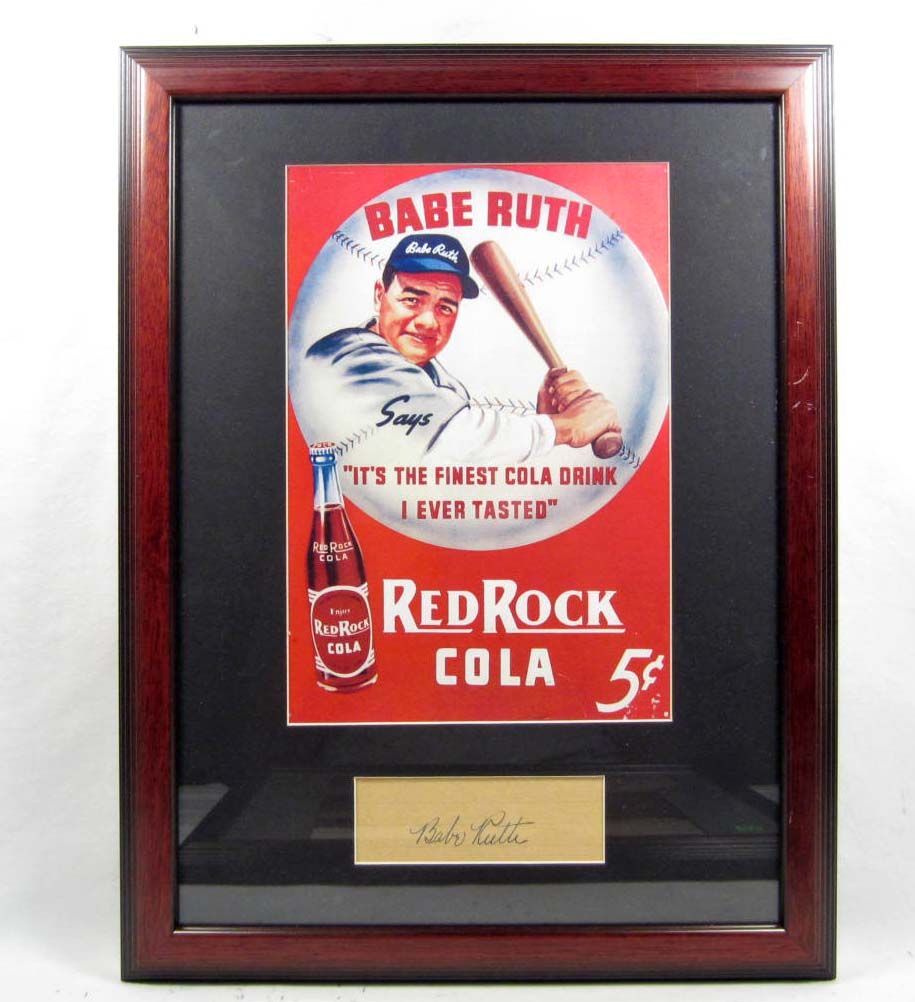 Print of Red Rock Cola Advertisement. Babe Ruth signature is signed in black ink. Approx. 13" by 17"
