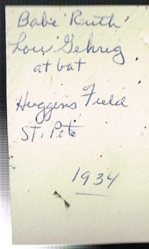Vintage real photo snap shots of 17, Babe Ruth & Lou Gehrig the March 1934 spring training game at Waterfront Park. The picture of Babe Ruth measures approximately 3 x 2 inches. The picture of Lou Gehrig measure approximately 2 x 1.5. The photograph of the players milling around measures approximately 2 x 3 inches.