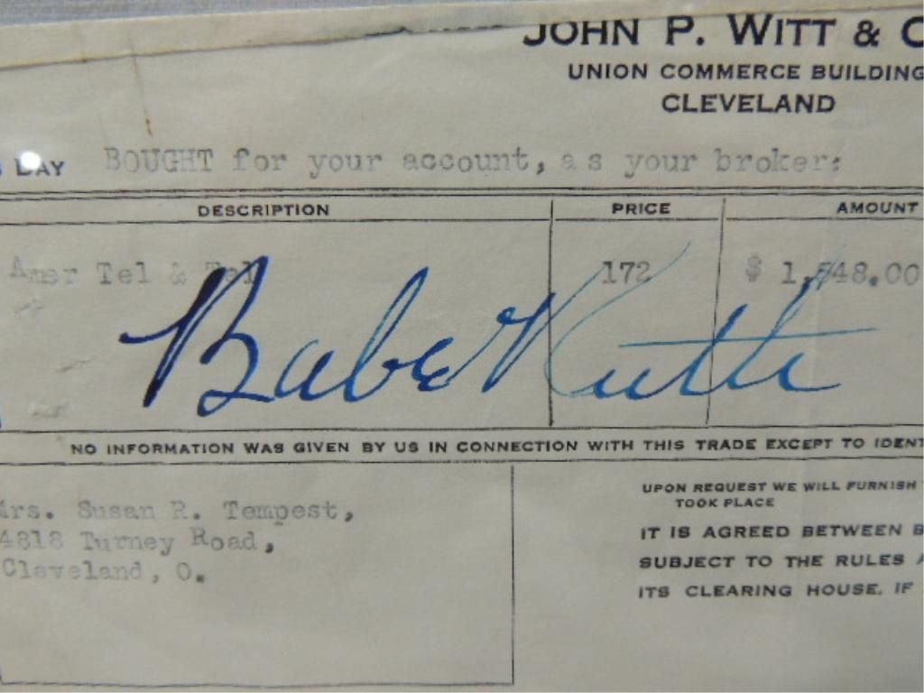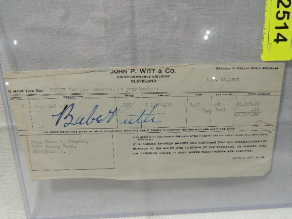 BABE RUTH SIGNATURE AUTOGRAPH ON DOCUMENT NO COA. AS SHOWN. VIEW PICTURE FOR DETAIL. PLEASE BE ADVISED, AND INFORMED REGARDING SIGNATURES OR AUTOGRAPHS THAT WE SELL AT AUCTION: WE ARE NOT AUTHENTICATORS, AND WE DO NOT AUTHENTICATE, OR VALIDATE ANY AUTOGRAPHS OR SIGNATURES THAT WE OFFER AT AUCTION. SOME AUTOGRAPHS OR SIGNATURES MAY COME WITH AN AUTHENTICATION FROM ANY ONE OF LITERALLY HUNDREDS OF AUTHENTICATORS ACROSS THE COUNTRY, AND AROUND THE WORLD. WE DO NOT ENDORSE ANY AUTHENTICATOR, NOR DO WE GUARANTEE THAT ANY AUTOGRAPH OR SIGNATURE IS AUTHENTIC, OR THAT IT WILL PASS AUTHENTICATION BY ANY AUTHENTICATOR. ALL AUTOGRAPHS OR SIGNATURES ARE SOLD