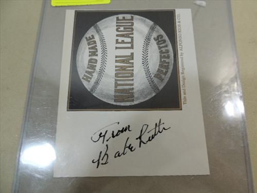 BABE RUTH SIGNATURE AUTOGRAPH ON BASEBALL LOGO NO COA. AS SHOWN. VIEW PICTURE FOR DETAIL. PLEASE BE ADVISED, AND INFORMED REGARDING SIGNATURES OR AUTOGRAPHS THAT WE SELL AT AUCTION: WE ARE NOT AUTHENTICATORS, AND WE DO NOT AUTHENTICATE, OR VALIDATE ANY AUTOGRAPHS OR SIGNATURES THAT WE OFFER AT AUCTION. SOME AUTOGRAPHS OR SIGNATURES MAY COME WITH AN AUTHENTICATION FROM ANY ONE OF LITERALLY HUNDREDS OF AUTHENTICATORS ACROSS THE COUNTRY, AND AROUND THE WORLD. WE DO NOT ENDORSE ANY AUTHENTICATOR, NOR DO WE GUARANTEE THAT ANY AUTOGRAPH OR SIGNATURE IS AUTHENTIC, OR THAT IT WILL PASS AUTHENTICATION BY ANY AUTHENTICATOR. ALL AUTOGRAPHS OR SIGNATURES ARE SOLD