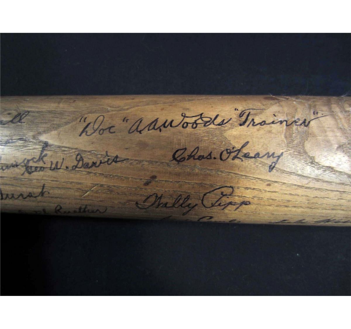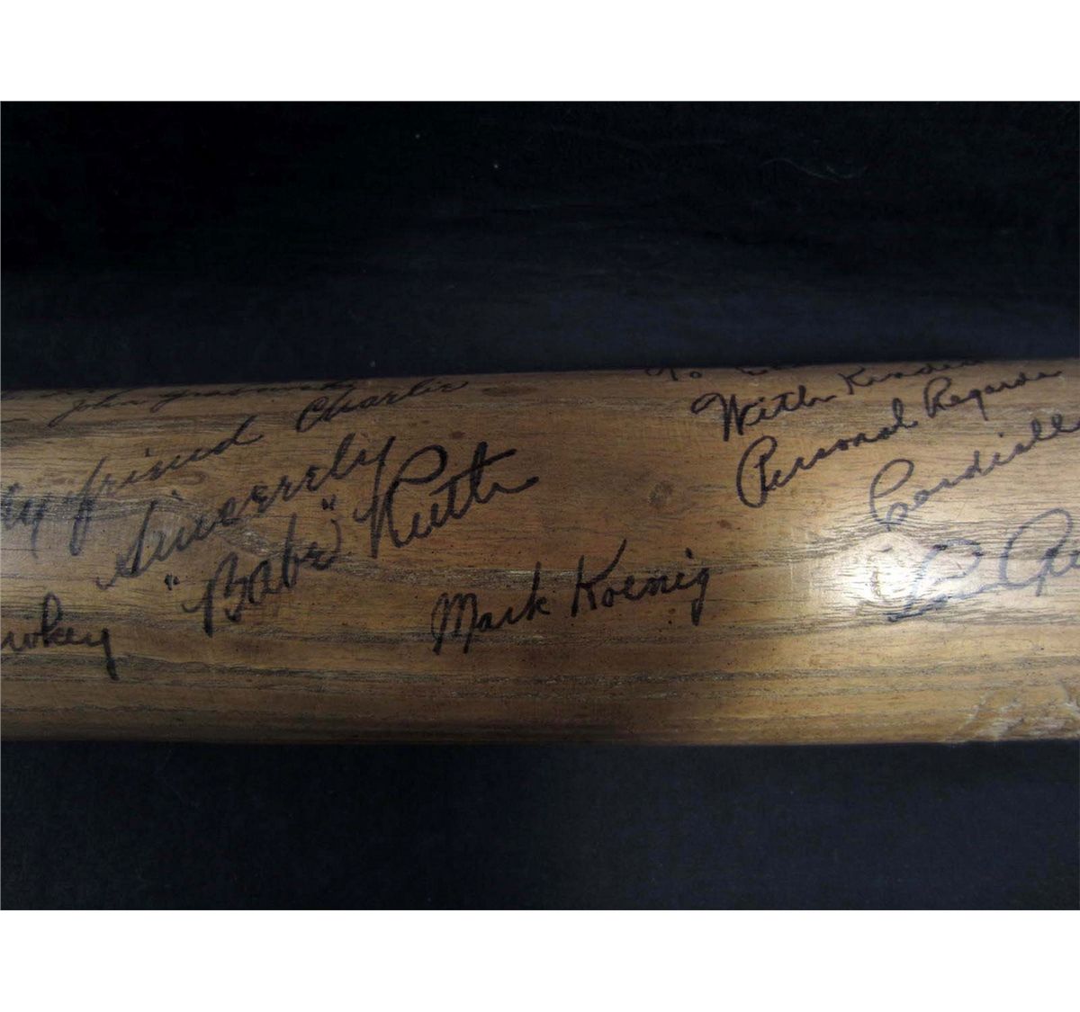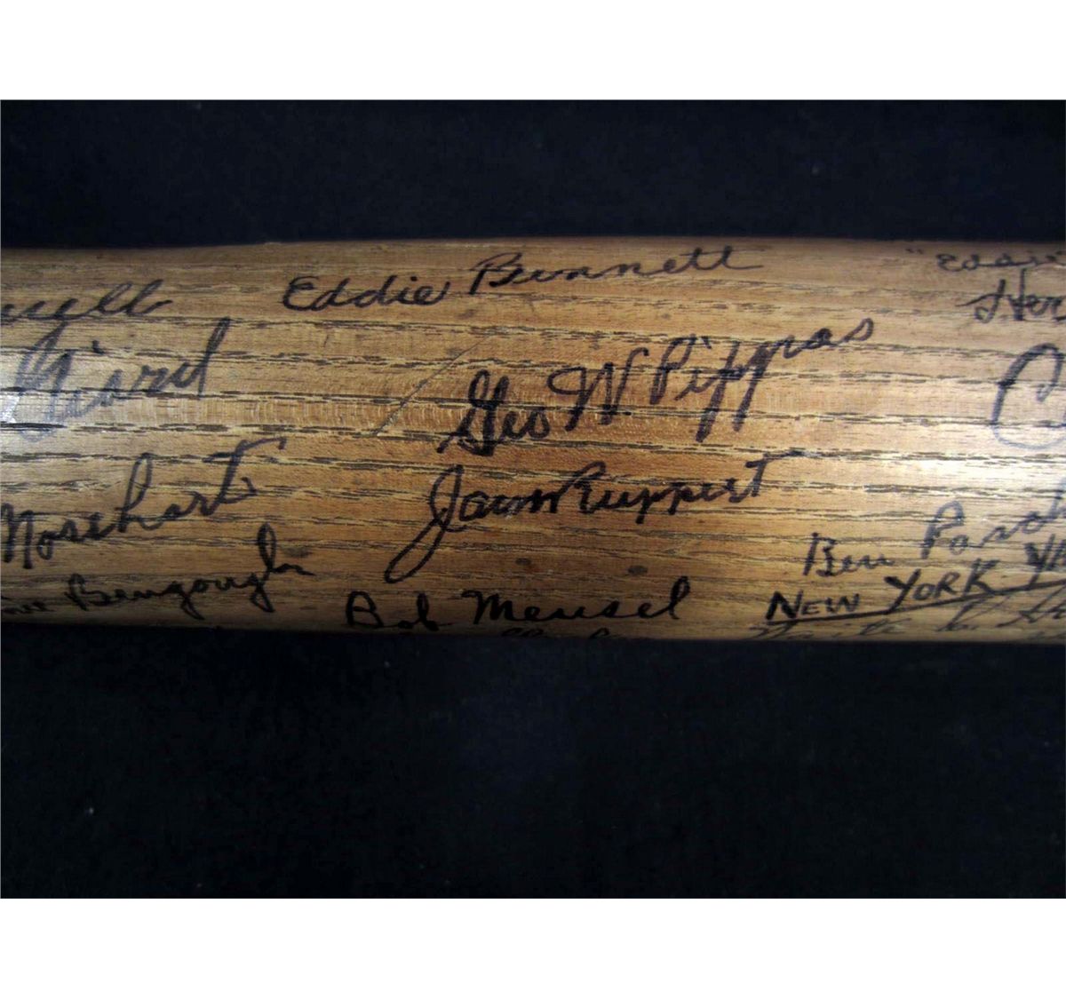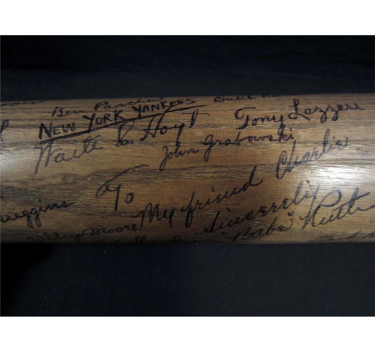 There are approx. 40 Baseball Player autographs on this baseball bat! Incl, Babe Ruth, Lou Gehrig, Witey Moore, Mark Koenig, Pat Collins, Urban Shocker, Joe Dugan, Eddie Bennett, Geo W. Davis, Cedric Durst, Wally Pipp, Chas. O'Leary, Tony Lazzers, More! New York Yankees.